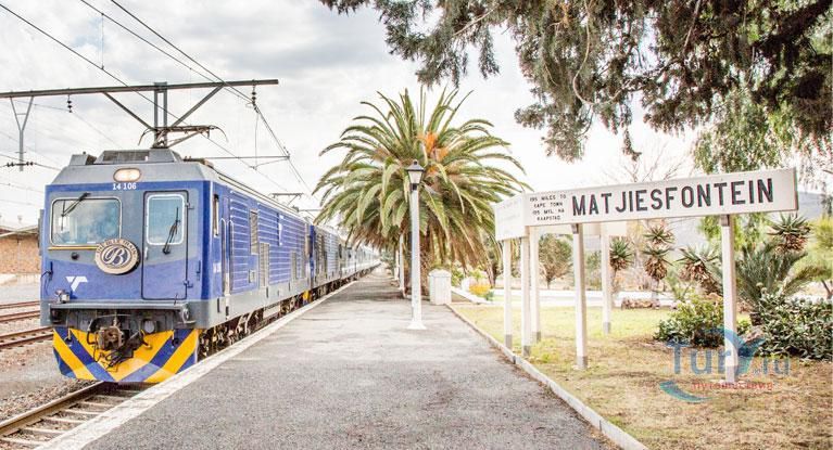 Blue Train обязан своему происхождению двум компаниям - Юнион Лимитед и Юнион Экспрес. 84 или 76 пассажиров могут путешествовать в этих поездах. Обслуживающий персонал каждого поезда составляет 30 человек. Длина поезда 380 метров. Из 18 вагонов 14 используются для пассажиров. Каждый из составов Blue Train берет с собой в путешествие 31 000 литров воды. В каждом купе можно поддерживать для комфорта гостей температуру от 18 до 24 градусов, несмотря на то, что температура окружающего воздуха порой доходит до 45 градусов жары.