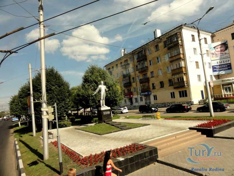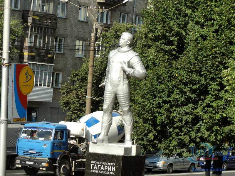В городе Чебоксары, на пересечении улицы Гагарина и проспекта Ленина, установлен памятник Юрию Гагарину. 12 апреля 1961 года в 9 часов 07 минут по московскому времени стартовал с космодрома Байконур первый в истории человечества космический полёт на корабле-спутнике "Восток", с пилотом-космонавтом Юрием Алексеевичем Гагариным на борту. Полёт проходил на околоземной орбите на высотах 181-327 километров. За 108 минут корабль-спутник с первым в мире космонавтом облетел земной шар и благополучно вернулся на Землю вблизи деревни Смеловка Терновского района Саратовской области. За этот полёт Юрию Гагарину было присвоено звание Героя Советского Союза и воинское звание майора. Начиная с 12 апреля 1962 года, день полёта Гагарина в космос был объявлен праздником - Днём космонавтики.