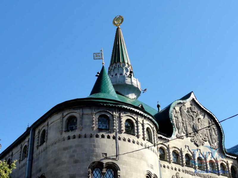 «…Это здание, открытие которого приурочивается к нынешнему юбилейному году, должно служить величественным памятником трехсотлетия царствования Дома Романовых и в сих видах оно выстроено в русском стиле эпохи первых царей из Дома Романовых. Все внутреннее убранство, как-то мебель, электрическая арматура, роспись стен и потолков и прочего, до последних мелочей, выдержаны также в русском стиле. Вообще это здание по своей художественности, цельности производимого впечатления, в связи с большими размерами его, должно занять одно из первых мест в ряду других построек русского стиля в Империи».