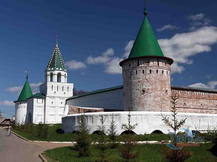 Свято Троицкий Ипатьевский мужской монастырь находится в Костроме, в месте впадения реки Костромы в Волгу. Относится к Костромской епархии Русской православной церкви. Монастырь сыграл значительную роль в русской истории XVI и особенно XVII века. Согласно наиболее общепринятой версии, монастырь основан около 1330 года татарским мурзою Четом, родоначальником рода Годуновых, бежавшим из Золотой Орды к Ивану Калите и принявшим в Москве крещение под именем Захария. В месте, где Захарию было ведение он основал монастырь. Ему явилась Божья Матерь с предстоящими апостолом Филиппом и священо-мучеником Ипатием Гангрским, результатом которого стало его исцеление от болезни. Члены царской семьи Романовых почитали Ипатьевский монастырь как свою фамильную святыню. Здесь погребены -основатель Чет и Иван Сусанин, отдавший жизнь за царя. На территории монастыря сохранилось множество исторических построек - Троицкий собор (1652), палаты бояр Романовых, звоница построенная на средства Годуновых и многое другое. В стенах монастыря находится Костромской объединенный историко-архитектурный музей-заповедник "Ипатьевский монастырь" и музей деревянного зодчества.