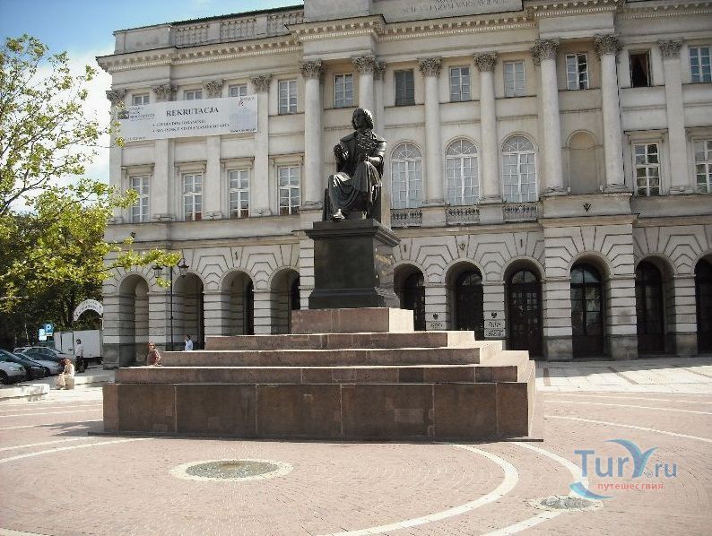 Памятник Николаю Копернику является одним из наиболее известных памятников в Варшаве. Памятник выполнен датским скульптором Бертелем Торвальдсеном. Скульптура, отлитая в 1822 году из бронзы, была установлена перед Дворцом Сташица на улице Краковское предместье в 1828 году. Высота статуи Коперника 28 метров. Скульптура изображает астронома сидящим и держащим в левой руке армиллярную сферу, а в правой руке - циркуль. В 1944 году во время Варшавского восстания памятник был повреждён. Монумент был снят с пьедестала и увезён для переплавки в пригородный посёлок Ныса. Но после окончания войны в 1945 году статую Николая Коперника нашли на свалке в пригородном посёлке, отреставрировали и установили его на прежнее место. Открытие восстановленного монумента состоялось 22 июля 1949 года. На пьедестале этого памятника великому учёному были высечены слова "Остановивший Солнце. Сдвинувший Землю". Сейчас на пьедестале с двух сторон нанесены надписи: с левой на латыни, с правой на польском языке, которые можно перевести как "Николаю Копернику от благодарных соотечественников". Памятник был установлен частично на общественные пожертвования, а частично на средства учёного, философа, католического священника и представителя польского Просвещения Станислава Сташица. В мае 2007 года на площади возле памятника была установлена модель Солнечной системы, которую увековечили в работе "О вращении небесных сфер". В Варшаве есть второй памятник Николаю Копернику, который был выполнен по проекту Луи Ницхова. Памятник установили у главного входа во Дворец Культуры и Науки в 1955 году. В 1967 году в Канаде по инициативе Евгения Барановского была выполнена копия памятника Николаю Копернику в Варшаве. Этот памятник установили в Монреале 12 ноября 1967 года на Всемирной выставке ЭКСПО-67. В наше время точная копия этого памятника установлена также и в Чикаго.