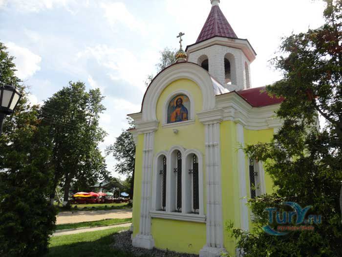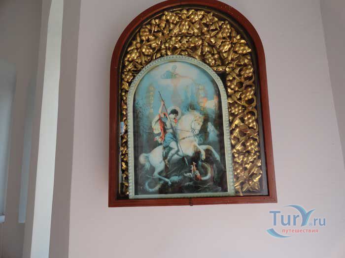 С водного пространства реки Волги открывается изумительный вид города Мышкин. Взгляд притягивает крутой, обрывистый берег, на котором в изумрудной зелени стоит удивительное сооружение с красными крышами. Это часовня в честь святого великомученика Георгия Победоносца, который во время правления императора Диоклетиана, не отрекся от христианской веры и после восьмидневных тяжких мучений в 303 году был обезглавлен. Часовня была построена 8 мая 2008 года в память о воинах погибших в Великой Отечественной войне. Внутри часовни постоянно горит свеча, как символ вечного огня за погибших. Люди приходят сюда помолиться и вспомнить о тех, кто не вернулся с войны защищая Родину от немецких оккупантов.