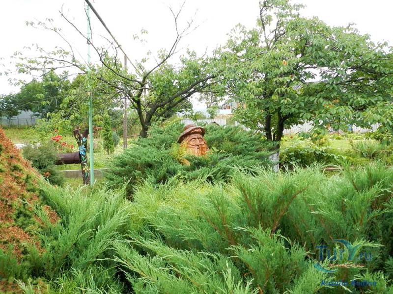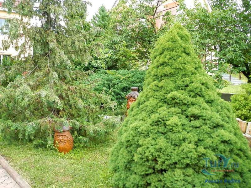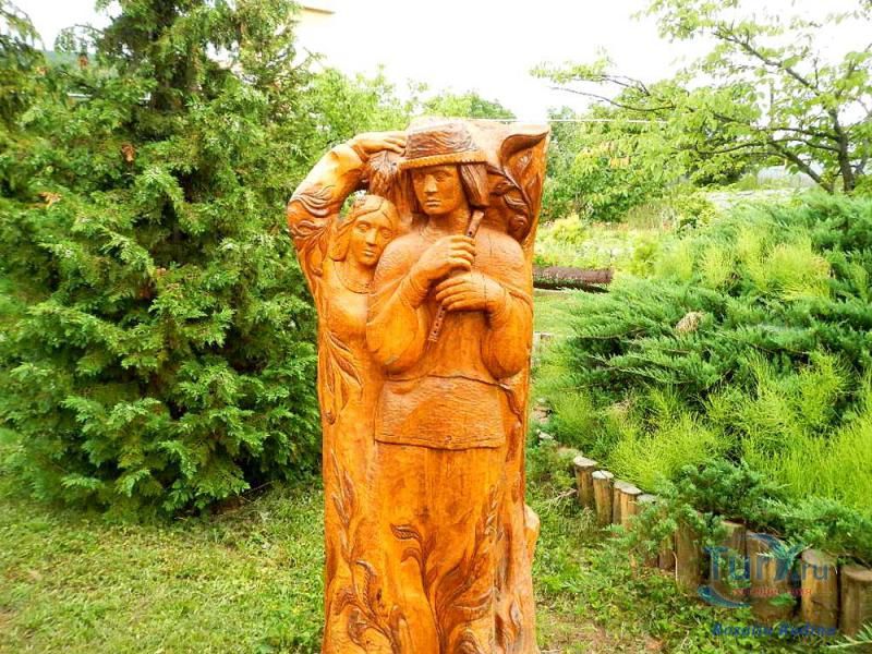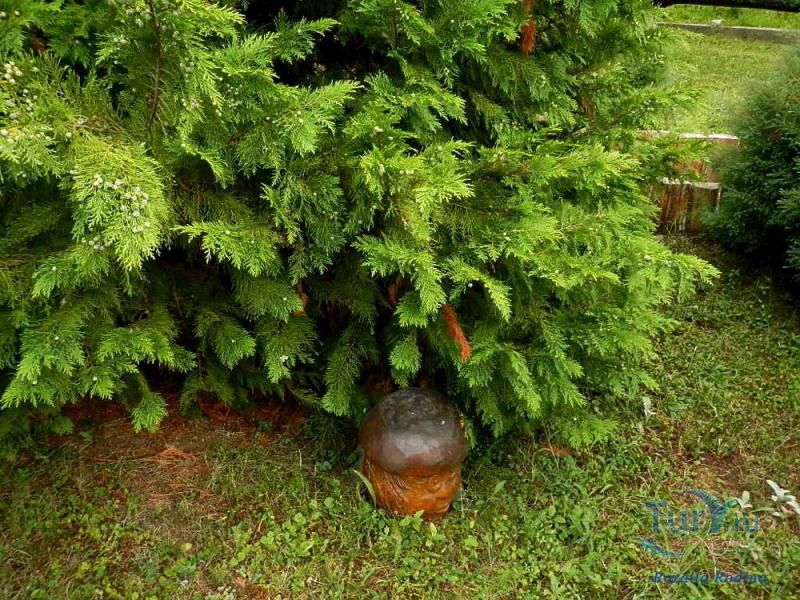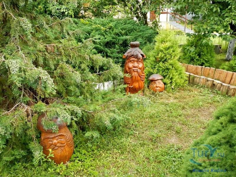 На выезде из города Виноградов, прямо на трассе есть необыкновенное, сказочное место, от которого невозможно отвести глаз. Это резиденцией Виноградовского лесничества. Пройдя на территорию попадаешь с любовью оформленный фантастический уголок, который пленит и не отпускает из своих владений. Под каждым кустиком или деревом взгляду открываются замечательные фигурки вырезанные из дерева. И каждая из них вызывает улыбку и маленький восторг. Здесь и гуцульская пара влюбленных, и грибочки с улыбкой, и доброжелательные фигурки лесных хранителей, а завершает все это очарование композиция с украинским возом, доверху заполненным богатствами выращенными на земле. Рядом на одной территории с лесничеством стоит небольшая церковь, куда можно прийти и остаться наедине со своими мыслями. Она, как духовное наследие, как хранительница чистоты и добра, невидимо окутывает красоту этих мест и защищает.