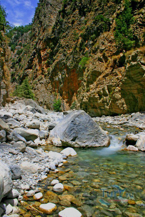 Ущелье Самарья и национальный парк Лефка-Ори расположено в номе Ханья, рассекает горы Лефка-Ори с севера на юг и заканчивается на южном берегу Крита. Ущелье Самарья - одно из самых протяженных и самых красивых ущелий во всей Европе и одна из наиболее известных достопримечательностей Крита. Статус национального парка оно получило в 1962 году. Ущелье предстает перед посетителями таким, каким оно было 3 млн. лет назад. В ущелье обитают уникальные козы Кри-Кри, архаичные животные Агрими и знаменитые Критские орлы, занесенные в Красную Книгу. Также, в ущелье произрастает более 300 видов уникальных лекарственных растений. На протяжении тысячи лет служило последним укрытием для местного населения от неприятелей. Длина ущелья около 18 км, а ширина колеблется от 3,5 до 300 метров. Глубина Самарья 1250 м, перепад высот на первых 2 км маршрута составляет 1 км. Сегодня представляет собой хорошо проторенный, но всё ещё сложный для прохождения путь. Ущелье открыто для прохождения, с середины мая до конца сентября. Большинство людей приезжают в ущелье Самарья на автобусе из города Ханья в город Омалос (Omalos) в верхней части ущелья, проходят все ущелье, прогулка занимает около 8 часов. Заканчивается переход в деревушке Агия Румели - бывшем логове пиратов, оттуда их забирают на лодке и привозят в Ханью.
