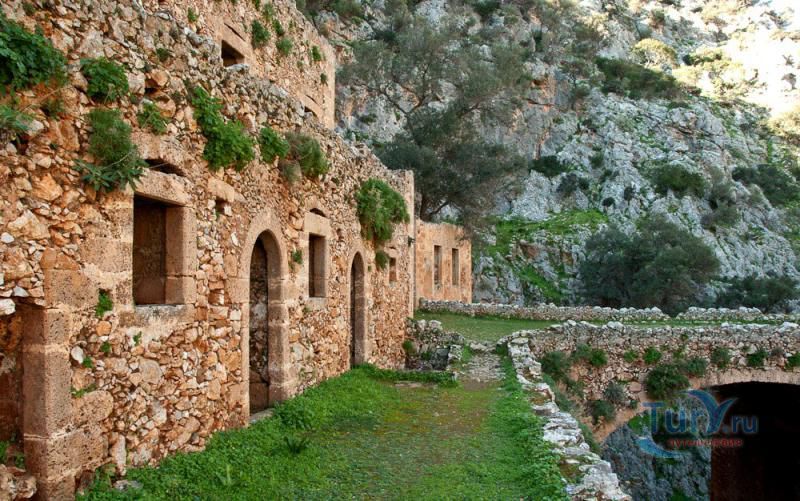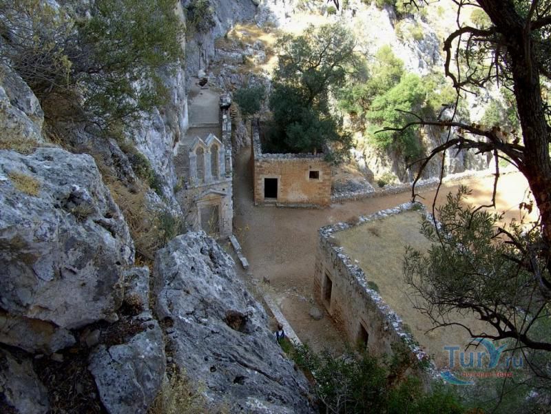 Полагают, что это первый монастырь на Крите, относящийся к VI или VII веку. Рядом с церковью находился вход в пещеру, где жил и умер Святой Иоаннис (глубина 135 м). Слева от входа - бассейн, вода которого считается священной. Внутри пещеры с богатыми каменным убранством находится и усыпальница Святого Иоанна.