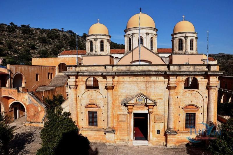 Монастырь Святой Троицы или монастырь Цангаролон расположен у подножья горной вершины Тзомбомилос. Он построен в 1612 году монахами Лавреньтием и Иеремием, членами венецианской аристократической семьи Тсанкарол. Считается одним из самых красивейших монастырей на Крите и представляет собой уникальный образец монастырской архитектуры. Дорога, усаженная кипарисами, приводит к западной части монастыря. На воротах с двойными колоннами ионического и коринфского стиля - надпись на греческом языке. Колокольня построена в 1864 году. В центре монастыря стоит храм Святой Троицы с куполом и двумя пристроенными церквями: Животворящего Источника и Иоанна Богослова. Монастырь является просветительным центром, достигшим своего расцвета в венецианский период. В монастырской библиотеке хранятся коллекции византийский икон и древних рукописей.