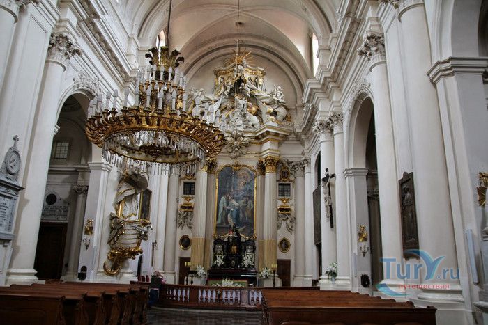 Церковь Святого Иосифа, Супруга Пресвятой Девы Марии (Церковь Визитанток) расположена в историческом центре Варшавы, в Краковском предместье. По приглашению королевы Марии-Луизы Гонзага, супруги Яна Казимира, летом 1654 года в Варшаву прибыли двенадцать монахинь-визитанток с матерью Мэри Кэтрин де Глетэн, для которых недалеко от королевской резиденции были построены деревянные церковь и монастырь. Во время шведского и татарского нашествий в 1655-1657 годах монахини временно покидали Варшаву. Строительство каменной церкви в стиле позднего барокко было начато в 1727 году по инициативе Елизаветы Сенявской-Любомирской и Марии Елены Понятовской. Автором проекта стал архитектор Кароль Антоний Бай. Из-за проблем с финансированием в 1733 году работы были приостановлены и возобновлены только в 1754 году, при поддержке Марии Софии Чарторыйской. Строительство продолжили архитекторы Эфраим Шрёгер и Якуб Фонтана, добавив к архитектурному стилю здания элементы рококо. Скульптуры на фасаде и кафедра в церкви выполнены Иоганном Георгом Плерша. 20 сентября 1761 года торжественное освящение нового храма совершил епископ Юзеф Анджей Залуский. Фасад церкви разделён колоннами по вертикали и ломаным карнизом - по горизонтали, украшен скульптурами. Над порталом размещён герб Ордена Посещения Пресвятой Девы Марии, изображающий сердце, пронзённое стрелами и увенчанное крестом. Храм имеет один неф с главным алтарём и шестью боковыми часовнями в стиле барокко и рококо. Завершается неф амвоном в форме лодки со сводами и люнетами над алтарём. Главный алтарь содержит изображение Благовещения Пресвятой Девы Марии, написанное в 1759 году художником Тадеушем Кунцем. Высокую историческую и художественную ценность имеют картины, расположенные в алтарях и нефе церкви: "Оплакивание" кисти Джона Рейснера, написанная в 1696 году, "Санкт-Алоизий Гонзага" работы Даниэля Шульца, выполненная по заказу королевы Марии-Луизы для храма, "Обучение Мадонной святой Анны" Франциска Лекшицкого, а также скиния XVII века из чёрного дерева и серебра, подаренная основательницей храма Марией-Луизой Гонзага де Невер, королевой Польши. В 1765 году была проведена реконструкция сводов под руководством архитектора Энрико Маркони. В 1807 году монахини были вынуждены временно покинуть монастырь, в стенах которого был размещён полевой госпиталь для наполеоновской армии. В 1825-1826 годах, будучи студентом Варшавского лицея, Фредерик Шопен играл на органе в церкви во время воскресных богослужений. После Январского восстания 1864 года царскими властями был запрещён на 40 лет приём новых монахинь в монастырь, 50 сестёр-визитанток покинули обитель, остались только 7 монахинь, благодаря им удалось сохранить церковь и монастырь, который снова был открыт в 1905 году. Церковь Визитанток - одна из немногих в Варшаве, которая избежала сильных разрушений во время Второй мировой войны, большинство реликвий и произведений искусства из храма, вывезенные нацистами в Германию, удалось вернуть после войны. С 1960 года и до своей отставки настоятелем храма был священник и поэт Ян Твардовский, эпитафия которому установлена в церкви. Перед храмом находится памятнику Предстоятелю польскому, кардиналу Стефану Вышинскому.