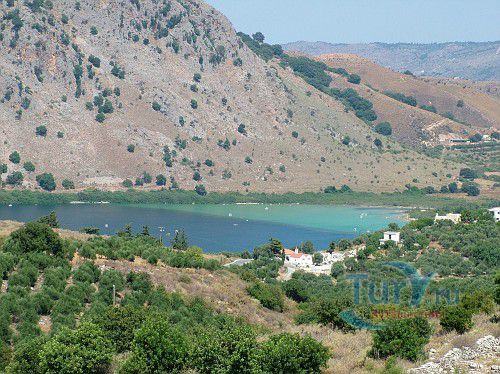Озеро Курнас - озеро естественного вулканического происхождения, которое находится недалеко от деревни Курнас. В средние века озеро носило название Коресия (неподалёку находился храм, построенный в честь Афины Коресийской), нынешнее название - "Курнас". Озеро является крупнейшим пресноводным озером на острове Крит , окружность - 3,5 км, площадь чуть более 1,2 кв.км, наибольшая глубина - 25 м, дно озера на 3 м ниже уровня моря. С двух сторон озеро окружено Белыми горами, спускающимися прямо в воду, а вода здесь очень чистая и пресная. По берегу прогуливаются важные и шикарные гуси разных мастей, встречаются цапли и большие бакланы. В озере живут редкой породы двухцветные водяные черепахи с узорчатым панцирем - Бугорчатая черепаха. Правда, редко попадается на глаза, а вот красивые красные рыбы и белые полосатые, доставят Вам огромную радость. Из озера вытекает река Армирос, а южнее озера в местечке Кератида находится интересная пещера Курна, с несколькими входов на разных уровнях. Озеро Курнас и окружающая его природа, находятся под защитой экологической сети "Натура-2000".