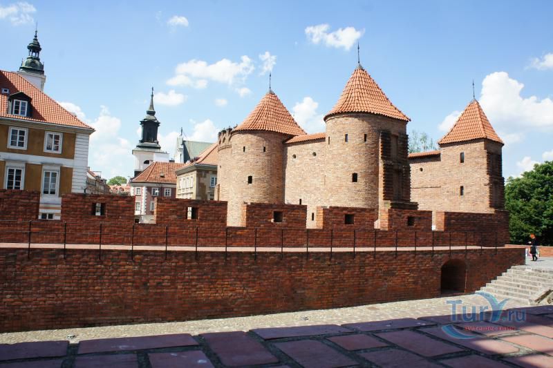 Барбакан и оборонительные стены являются знаменитой достопримечательностью Варшавы. Они были сооружены в 16 веке венецианским архитектором Джованни Баттистой, который в то время жил и творил в Польше. Барбакан - оборонительное укрепление у северных ворот Старого города, которое строилось с 1379 по 1548 годы. Когда-то здесь был подъёмный мост, но до наших дней он не сохранился. На этом месте заканчивается Старый город и начинается Новый, куда и ведёт улица Новгородская. Забавным словом "барбакан" поляки называют небольшие, но грозные башенки, которые являются мощными оборонительными сооружениями. Толщина стен барбакана не менее 3 метров. Располагается он у северных ворот самого сердца польской столицы, именуемого Старым городом, занесённого в список исторических памятников мирового значения и привлекающего к себе огромное количество туристов. Во время Второй мировой войны сооружение было основательно разрушено, после окончания войны правительством Польши было принято решение о восстановлении этой исторической реликвии. Реконструкция проводилась по старинным рисункам, дошедшим до наших дней из 16 века. В 1980 году восстановление признали успешным и Варшавский Барбакан в составе Старого города внесли в Список мирового культурного наследия ЮНЕСКО. Сегодня Варшавский Барбакан является замечательным музеем, в котором с 1999 года туристы могут посещать разнообразные выставки, рассказывающие об истории и культуре польской столицы. В летнее время Барбакан нередко становится своеобразной сценой для эстрадных и театральных постановок. Барбакан выполнен в виде полукруглых башен со множеством бойниц для наблюдения и ведения стрельбы. Размеры барбакана составляют 14 метров в ширину и 15 метров в высоту. Он имеет 3 этажа и отдалён от оборонительных стен на 30 метров. Его главным предназначением было сдерживание штурмующих сил противника при нападении на город. Однако за весь период своего существования барбакан лишь раз использовался по назначению, когда в 1656 году Варшаву осаждали шведские войска. Большая часть стен была разрушена. Реставрация оборонительных стен проводилась в межвоенный период и после Второй мировой войны. В остальное же время барбакан служил лишь архитектурной достопримечательностью. Оборонительные стены двойные, построенные на протяжении 14-16 веков и перестроенные в период с 1950 по 1963 годы. Город был закрыт оборонительными стенами в кольце длиною в 1200 метров с закрытой площадью около 8,5 гектаров. Лучше всего сохранились фрагменты, которые идут параллельно улице Подвале от Королевского Замка в сторону Барбакана и набережной реки Висла. В настоящее время в Барбакане открыта постоянная музейная выставка, посвящённая Старому городу и оборонительным укреплениям старой Варшавы. Барбакан и оборонительные стены являются одной из самых известных и знаменитых достопримечательностей столицы Польши.