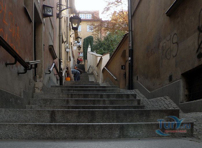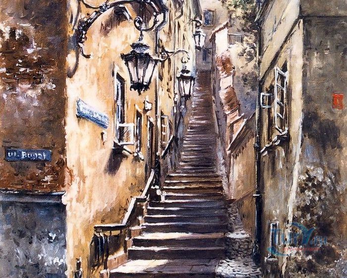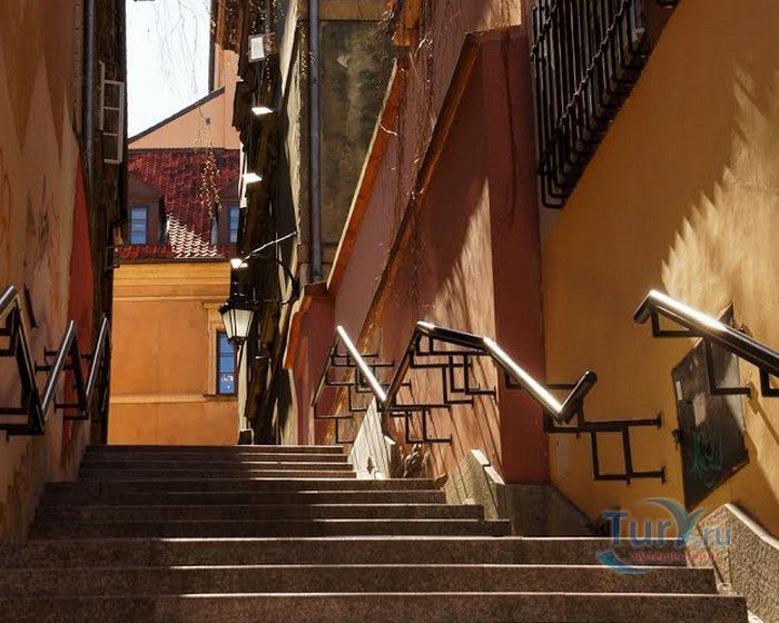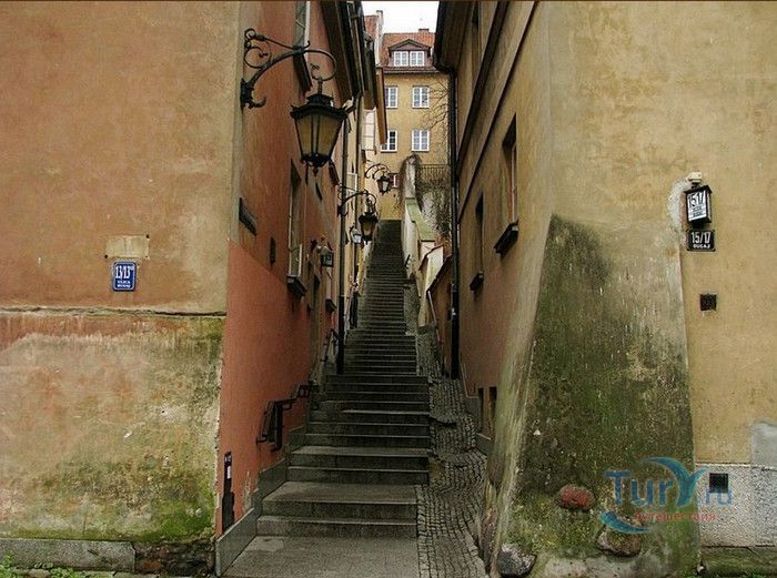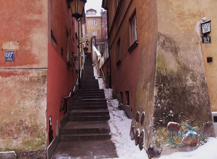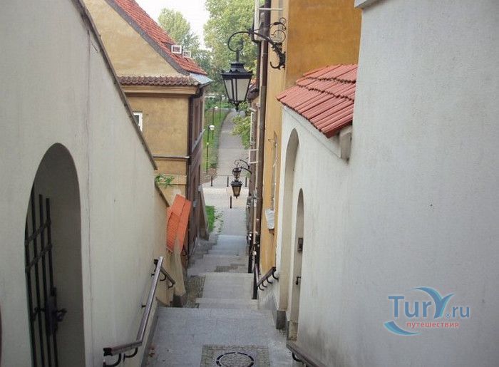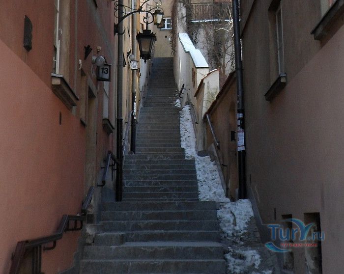 Улица Каменные Ступени - одна из самых живописных и маленьких улиц в Старом городе, историческом районе Варшавы. Узкая, крутая улочка, вымощенная каменными ступеньками, соединяет Старый город с территорией на берегах Вислы. Вся улица представляет собой лестницу, с обеих сторон которой расположены жилые дома. Предположительно, улица существовала уже на рубеже XIII - XIV веков, а первое официальное упоминание о ней датируется 1527 годом. В те времена это была улица с деревянными ступенями, ведущими к Белой башне (ныне не существующей), расположенной на городском валу, и далее - к Висле. Это был самая короткая дорога, по которой горожане носили воду из реки. Улицу в XVII -XVIII веках называли На Сходках, Сходки, Переходная, а с конца XVIII столетия, после замены деревянных ступеней на каменные, Каменные Ступени. Известно, что в 1806 году сам Наполеон Бонапарт, в сопровождении князя Юзефа Понятовского и нескольких маршалов Франции, прошёлся по улице Каменные Ступени к Висле. В XIX веке улица стала излюбленным местом художников и фотографов, акварель "Улица каменные Ступени" кисти известного польского художника Максимилиана Герымского находится в Национальном музее Варшавы. Во время Варшавского Восстания 1944 года дома и сама улица были практически полностью разрушены. Восстановительные работы велись в 1952-1962 годах, во время которых были немного расширены ступени лестницы. В 2002 году был проведен капитальный ремонт улицы, 78 ступеней заменены на новые, изготовленные из серого гранита, установлены деревянные поручни и железные решётки. Улица Каменные Ступени - одно из любимых мест жителей и гостей Варшавы, прогулка по каменной лестнице входит в туристические маршруты по Старому городу Варшавы.