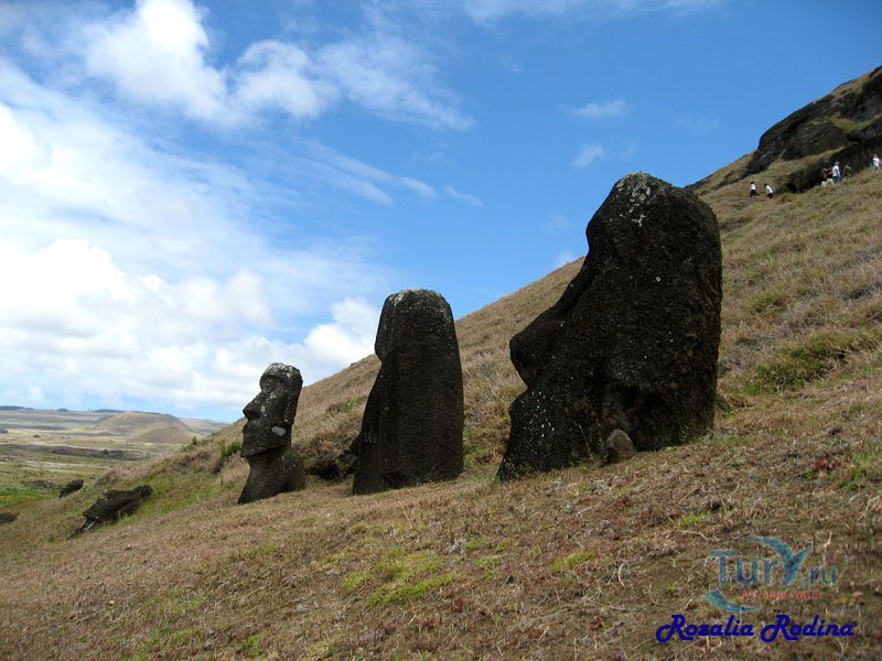 На экскурсии к вулкану Рано-Рараку Вы увидите как рождались знаменитые Моаи острова Пасхи и какими примитивными инструментами высекали этих исполинов. Увидите множество недоделанных истуканов и тех, кто уже родился, научился ходить, но так и не дошел до цели, как будто по мановению волшебной палочки кто-то навсегда здесь остановил время.