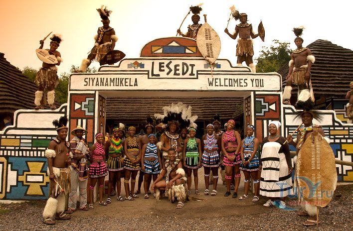 Этническая центр - деревня Леседи расположена в 40 километрах от Йоханнесбурга, столицы ЮАР, недалеко от городка Сварткопс Хиллс. В этом необычном музее под открытым небом воссозданы быт и традиции коренных народов Южной Африки. Гостям предлагается посетить пять традиционных дворов жителей африканских племен: зулу, педи, коса, ндбеле и басуто. Первоначально территория деревни принадлежала племени зулу, но в 1993 году Кингслей Холгейт, известный исследователь Африки решил показать туристам жизнь остальных африканских племен, объединив их в одном месте. Традиционная программа посещения деревни состоит из нескольких этапов. Гостей жители деревни встречают приветственными песнями и танцами одного из племен, после чего их приглашают в небольшой кинозал, где на экране в форме исторической справки транслируется документальный фильм. После просмотра фильма, начинается прогулка по деревне. Экскурсии проводит местный гид, являющийся также вождем одного из племен. Гостей приводят во двор каждого племени, где они могут не только сравнить условия быта и уклад жизни, но и поучаствовать в ведении домашнего хозяйства, например, приготовив на африканской ручной мельнице муку. Интересно то, что ко всем экспонатам музея можно прикасаться. Например, можно примерить национальную одежду африканцев или заходить в любые помещения на дворовых территориях племен. Здесь можно пообедать, попробовав традиционные блюда африканской кухни. Кульминацией вечера становится ужин в большом, крытом соломой доме, называющемся Бома, где вниманию гостей предлагается яркое шоу с этнической музыкой и танцами, в котором гости могут так же поучаствовать. В деревне за дополнительную плату можно остаться на ночлег. Размещаются постояльцы в комфортных «нгуни» - номерах, традиционно оформленных колоритными дизайнерскими предметами интерьера, несущими яркие цвета и энергетику, характерную для племени зулу. Путешествуя по ЮАР, найдите возможность посетить эту удивительную деревню, и Вы увезете отсюда множество ярких фотографий, сувениров на память и незабываемых впечатлений.