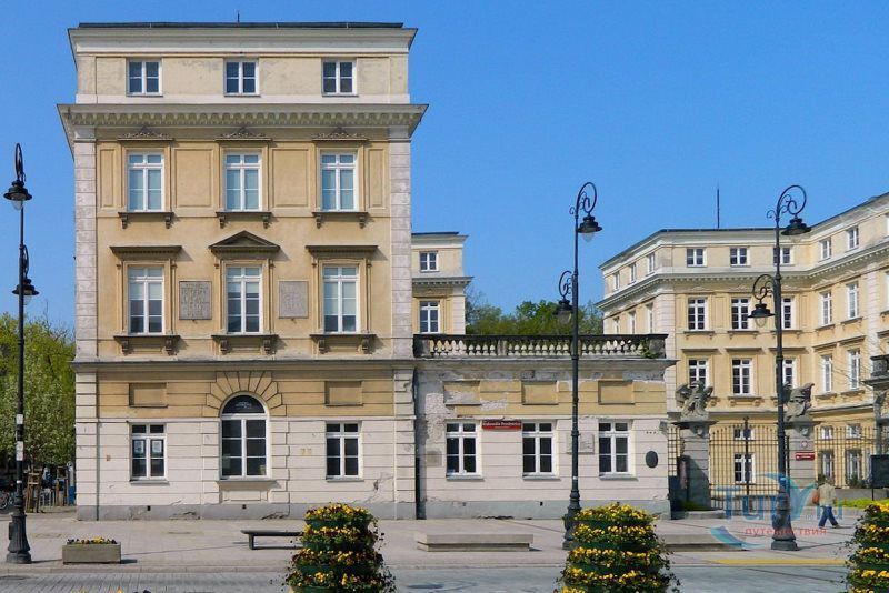 Гостиная Шопенов является филиалом Музея Фридерика Шопена. Она расположена в здании Академии изобразительных искусств. Целью этого филиала является почтить память великого композитора и предоставить знания о его жизни и творчестве для широкой аудитории. Гостиная Шопенов расположена во Дворце Чапских, который считается одним из выдающихся примеров стиля барокко с элементами рококо в польской столице. В 1733 году здание дворца было приобретено семьёй Чапских. Они начали реконструкцию интерьеров дворца в стиле барокко. Главные ворота были украшены орлами. Интерьеры внутри помещения были реставрированы по проектам Антонила Капара и Самуэля Контессы. В 1790 году по проекту архитектора Иоганна Кристиана Камзетцера к зданию дворца были пристроены два флигеля. В одном из флигелей проживала семья Шопенов. В настоящее время в левом флигеле расположена Гостиная Шопенов. 25 сентября 1939 года основной корпус дворца был сожжён, а позже были полностью уничтожены интерьеры дворца. В 1948-1959 годах по проекту архитектора Станислава Брукалского проводились реставрационные работы здания дворца. После реставрации Дворец Чапских был включен в состав Академии изобразительных искусств. В 1985 году здесь был открыт музей Гостиная Шопенов, в коллекции которого представлены около 30 тысяч работ из всех видов изобразительного искусства: живопись, скульптура, рисунок, графика. Гостиная Шопенов - часть квартиры, в которой Фридерик Шопен провёл свои последние годы перед отъездом из страны. Гостиная была воспроизведена в 1960 году на основании картины художника и друга композитора Антония Кольберга. Интерьер Гостиной составляет мебель, рояль, личные вещи и предметы той эпохи. В экспозицию входят портреты Шопена и графические работы, на которых представлена Варшава начала 19 века. Собрание данного музея - коллекция реликвий Фридерика Шопена. Гостиная Шопенов - это единственное место в Варшаве, где проживал Шопен, доступное для посетителей. Две предыдущие квартиры Шопена не были воспроизведены. Одна из них была расположена в здании Саксонского дворца, которого уже не существует. Вторая квартира находилась во флигеле Казимировского дворца. Кроме Гостиной Шопенов в Варшаве для посетителей открыты Музей Фридерика Шопена в Варшаве и Дом, где родился Фридерик Шопен в селе Желязова Воля.