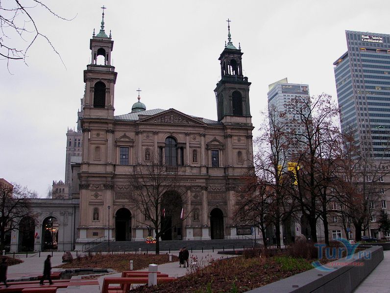 Костёл Всех Святых является самым большим храмом в Варшаве, построенным в неоклассическом стиле. Костёл начали строить в 1861 году по проекту одного из наиболее выдающихся архитекторов Варшавы тех времён Хенрика Маркони, а освящён костёл был 31 октября 1883 года архиепископом Винсентом Попелем. На тот период строительство храма не было завершено, в 1892 году только началось строительство башен. Полностью строительство костёла было завершено в 1893 году, когда достроили церковные башни и установили колокола. В 1939 году во время Варшавского восстания и военных действий храм был повреждён. Были разрушены восточная башня храма, крыша и потолок, уничтожено множество произведений искусства, ценных надгробий и картин, повреждены орган и колокол. Во время оккупации Варшавы немцами Костёл Всех Святых, наряду с Костёлом Святого Августина и Костёлом Рождества Пресвятой Девы Марии, оказался в гетто и служил христианам еврейского происхождения, которые находились в гетто. Несмотря на то, что здание было значительно разрушено, костёл давал кров, оказывал помощь и помог выжить многим евреям Варшавского гетто. В приходском здании нашло убежище множество еврейских семей, в том числе семья знаменитого врача-иммунолога, профессора Людвика Хиршфельда, а также семья Заменгофов. Также Пастор Марцель Годлевский внёс свой вклад в спасение евреев, находящихся в гетто. После окончания войны Костёл Всех Святых был перестроен при финансовой поддержке, в том числе и евреев. Интерьер храма украшает Главный Алтарь 1880 года с изображением Воскресения и Апофеоза святых, боковые алтари: Господь Иисус, Святой Иосиф, Святой Антоний из Падуи, Благословение Христово, а также амвон, выкованный из железа в 1889 году - творение Аполлония Ниневского и Юзефа Пия Дзеконского. Костёл с тремя нефами, куполом, латинским крестом, величественным святилищем и жертвенником, с портиком гармоничных пропорций, представляет ажурную кафедру 1889 года, созданную Юзефом Пия Дзеконским и восемь картин Майкла Виллманна конца 17 века. Архитектура Костёла Всех Святых напоминает Базилику Святого Августина в Падуе. Храм вмещает до 3,5 тысяч человек. Рядом находится Часовня Богоматери Ченстоховской 1875 года, которая изначально была посвящена непорочному Зачатию Пресвятой Девы Марии. 7 июня 1987 года Папа Римский Иоанн Павел ІІ отслужил в костёле мессу и открыл ІІ Национальный евхаристический конгресс. В торжестве принимала участие Мать Тереза из Калькутты. В 1993 году в честь 15-й годовщины понтификата Иоанна Павла ІІ на крыльце храма был открыт памятник в виде статуи понтифика, выполненный и подаренный итальянским скульптором Джорджио Галлетти.