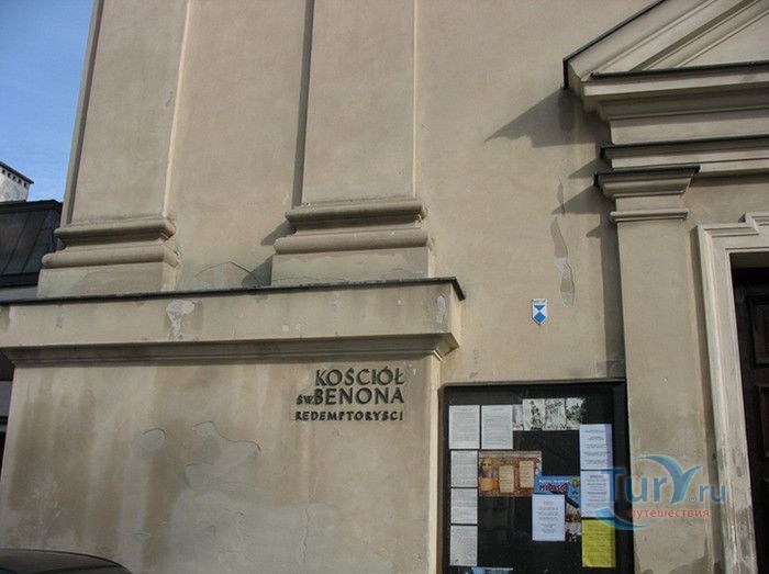 Церковь Святого Бенона расположена в Варшаве, в районе столицы Новый город, рядом с набережной Вислы. Строительство храма велось в 1643-1649 годах братством Святого Бенона, освящение состоялось в 1649 году. Однонефный храм имел прямоугольную форму, неф делился пилястрами и сводчатыми арками на три пролёта. Церковь была покрыта двускатной крышей, на которой возвышалась небольшая башенка. В течение XVIII века влияние общины Святого Бенона постепенно сходило на нет, а в 1781 году братство прекратило своё существование. В 1787 году церковь была передана редемптористам, первую общину которых за пределами Италии возглавил монах Климент Хофбер, позже называемый Святым Климентом. В 1788-1789 годах с северной стороны к храму было пристроено двухэтажное здание монастыря, в 1801-1802 годах была возведена часовня, посвященная Спасителю мира. В помещениях монастыря монахами были открыты сначала приюты для мальчиков, позднее - для девочек, обучение велось на польском, русском и немецком языках. Со временем эти приюты были реформированы в профессионально-технические училища: ремесленное - для мальчиков и домоводства - для девочек. В 1808 году, из-за ложных наветов, по приказу наполеоновских властей редемптористы были изгнаны из Варшавы и Польши, а Святой Климент заточён в крепости Костшина. Храм и здания монастыря были превращены в казармы, затем в них располагались училище, военные склады, жилые помещения и даже фабрика. В 1938 году церковные постройки были куплены Марией Бернацкой и переданы Варшавской курии. Во время Второй мировой войны храм был разрушен, под его завалами погибли около 40 человек. В 1946 году церковь была возвращена редемптористам, а с 1956 года храм начали восстанавливать. В 1958 году кардинал Стефан Вышинский совершил торжественное освящение церкви. Перестройка и восстановление внутреннего убранства велись поэтапно, в 1977 году храм был перестроен по проекту архитектора Збигнева Волака.