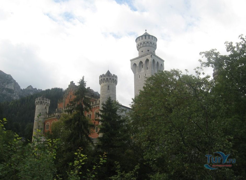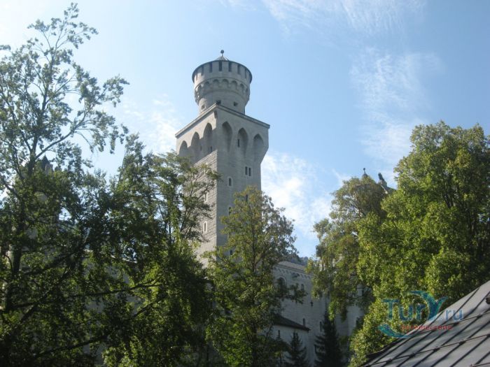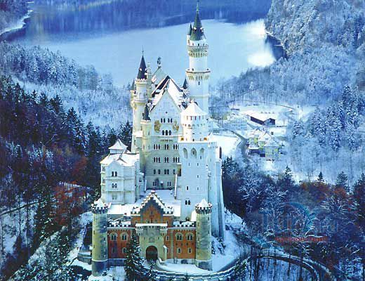 В нескольких километрах от Цугшпице расположен сказочный замок Нойшванштайн (Neuschwanstein). Его в полной мере можно назвать сказочным сразу по двум причинам. Во-первых, именно он служил «образцом» для сказочного замка в Диснейленде. Во-вторых, его построил «сказочный» король. Нойшванштайн - это сбывшаяся наяву фантазия, замок-сказка, вознесший свои будто игрушечные башенки и галереи над лесистыми холмами в Баварских Альпах под городом Фюссеном близ австрийской границы. Он производит впечатление театральной декорации, а отчасти и является ею, поскольку создавался под деятельным руководством мюнхенского театрального художника Кристиана Янка. При этом у замка весьма внушительные размеры, да и строился он в течение семнадцати лет. Возводя этот замок, король Баварии Людвиг II стремился воплотить в его архитектуре свои представления о романтике. Замок Нойшванштайн строился вовсе не для реальной жизни. Он был возведен, так сказать, во славу искусству. Этой иллюзии, воплощенной в жизнь, будто изначально суждено было стать музеем. Спальня со столь тонкой и хрупкой деревянной резьбой, что до нее страшно дотронуться: 14 резчиков почти пять лет трудились, чтобы создать это чудо. Зимний сад, воссоздающий атмосферу грота. Величественный тронный зал в стиле роскошной византийской церкви. Везде настенные росписи с сюжетами из «Нибелунгов», «Тристана и Изольды», «Лоэнгрина», «Тангейзера»…