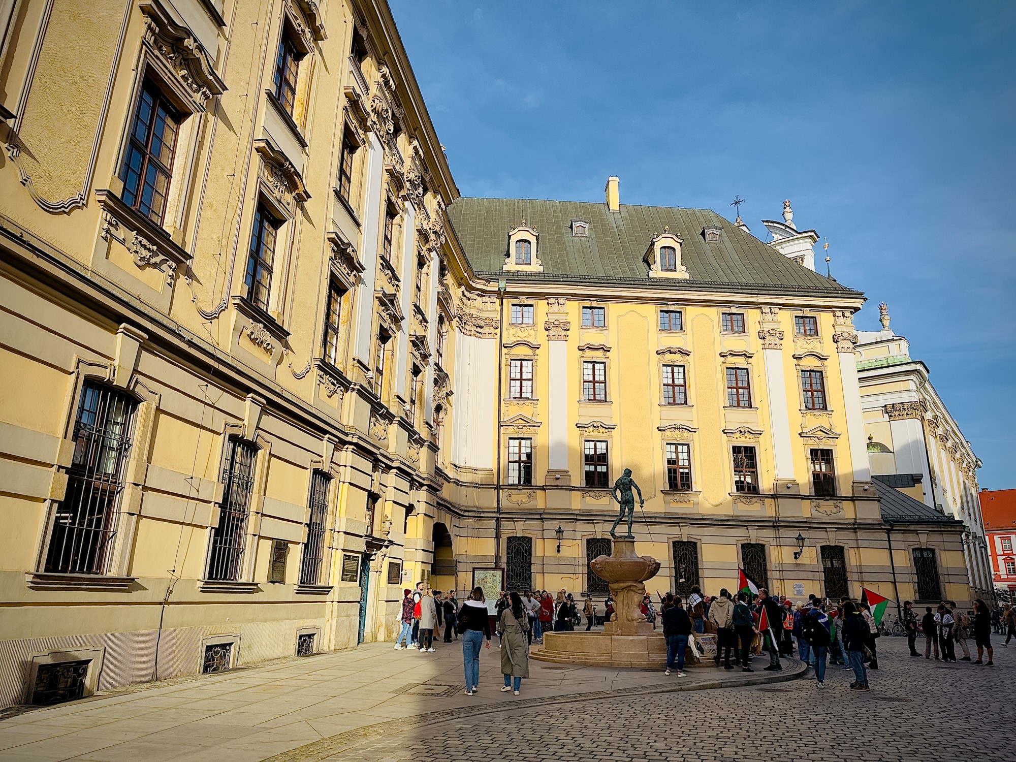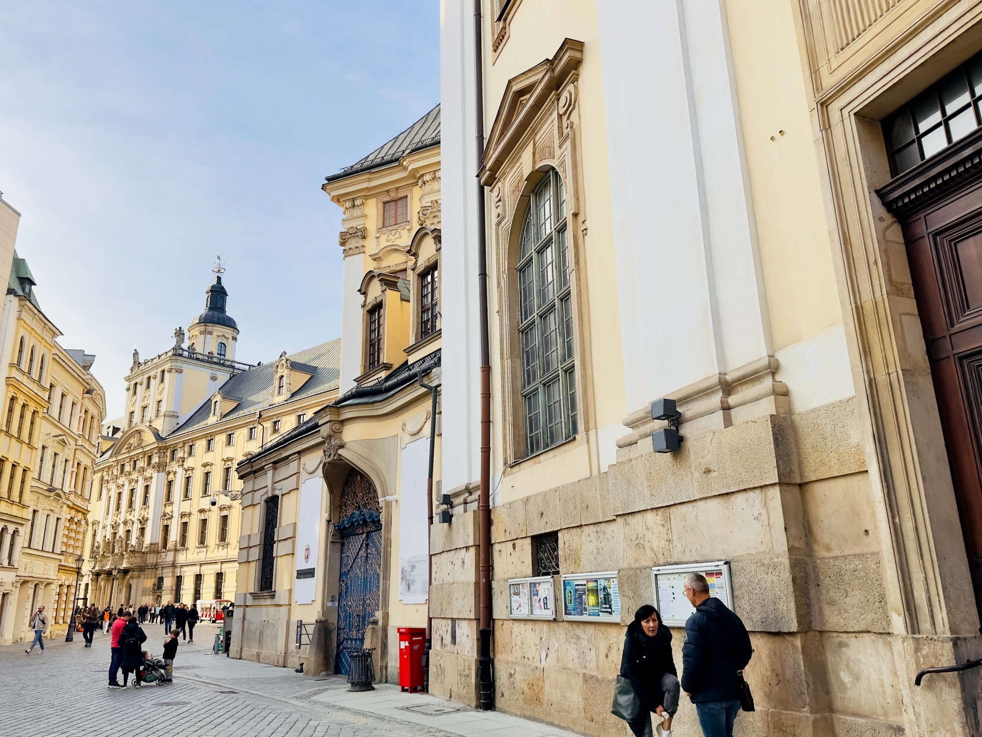 Университет Вроцлава – самый старый ВУЗ города, основанный более 300 лет тому назад. Здание находится в барочном комплексе, который образуют бывшая коллегия и иезуитский костел. Здесь находится, в том числе, Музей Вроцлавского Университета, который скрывает жемчужину нижнесилезского барокко - актовый зал Леопольдина, а также музыкальный зал ”Oratorium Marianum”, где на протяжении 200 лет дают концерты выдающиеся артисты. В астрономической обсерватории в Математической Башне можно увидеть старое оборудование, в том числе, астролябию XIV века, глобус неба XVI века и датируемый 1665 годом циркуль.