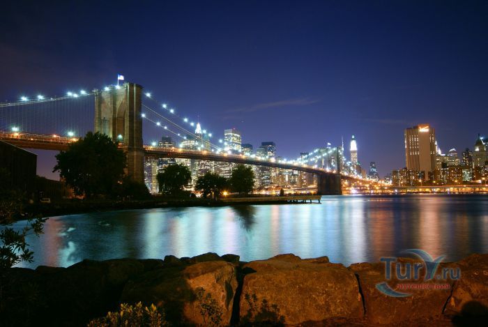 Бруклинский мост — один из старейших висячих мостов в США, его длина составляет 1825 метров, он пересекает пролив Ист-Ривер и соединяет районы Бруклин и Манхэттен в городе Нью-Йорк. На момент окончания строительства он являлся самым большим подвесным мостом в мире и первым мостом, в конструкции которого использовались стальные прутья. Первоначальное название — Мост Нью-Йорка и Бруклина. По мосту осуществляется как автомобильное, так и пешеходное движение — вдоль он разделен на три части. Боковые полосы используются автомобилями, а средняя, на значительном возвышении, пешеходами и велосипедистами.