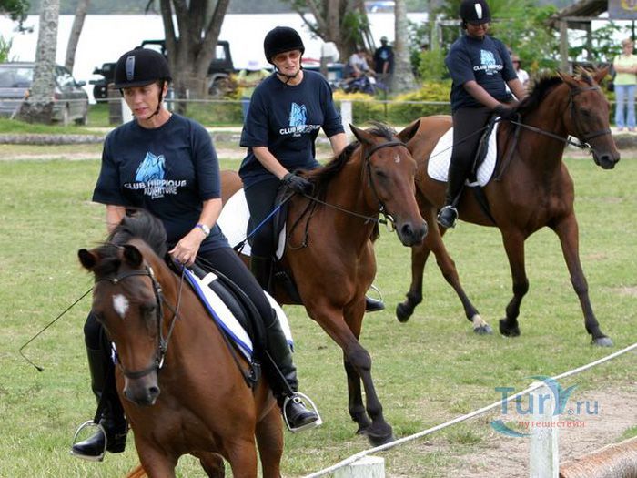 Одним из самых популярных вариантов верховой езды является дневной тур на пляж Erakor, который включает путешествие через влажные тропические леса и вдоль белого песчаного пляжа Erakor, ланч барбекю на пляже и возможность покататься без седла в кристаллически чистых синих водах.