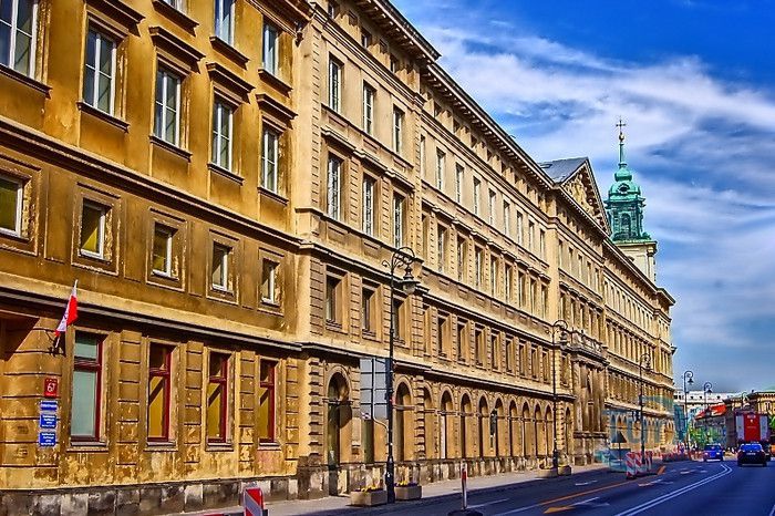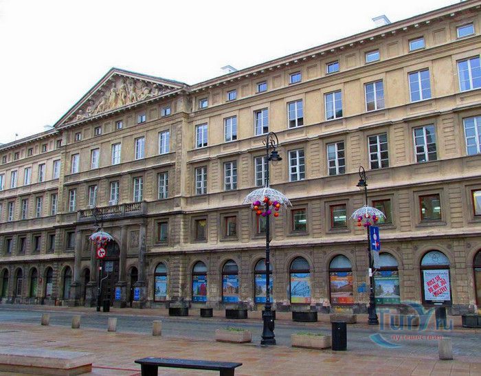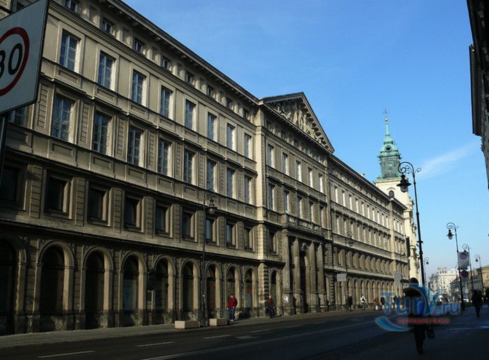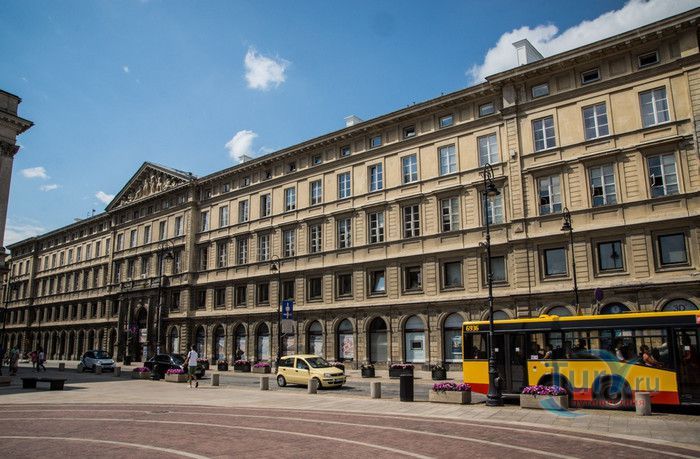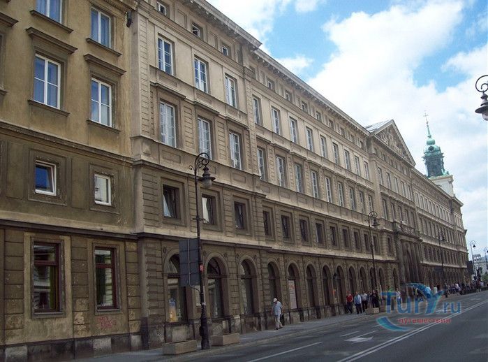 Дворец Замойского расположен в Варшаве, между Министерством финансов и Дворцом Сташицы. Здание было построено в 1667 году по заказу первого его владельца Яна Велопольского. В 1774-1745 годах дворец был перестроен архитектором Петром Гизом. Владельцами особняка в последующие годы были Франциск Ксаверий Браницкий и Анна Сапега, во дворце на протяжении нескольких лет жил Станислав Сташица. В 1839 году дворец приобрёл граф Анджей Замойский, по заказу которого в 1843-1846 годах архитектором Энрико Маркони здание было перестроено в стиле неоренессанс. Фасад дворца приобрёл схожесть с фасадом римского Палаццо делла Канчеллерия. В центре, наверху здания, был установлен треугольный фронтон с барельефами, изображающими мифологические сцены, работы Павла Малински. 19 сентября 1863 года, во время польского восстания, из окон Дворца Замойского, была забросана бомбами и обстреляна коляска, в которой ехал наместник царства Польского граф Фёдор Фёдорович Берг с адъютантом Виктором фон Валем. Серьёзно никто не пострадал, были контужены Виктор фон Валь и несколько казаков конвоя, а сам граф отделался простреленным воротником шинели. В наказание за это солдаты царской жандармерии устроили обыск, во время которого из окон выбрасывали имущество жильцов, грабили и крушили здание, был даже сброшен с постамента памятник Николаю Копернику, установленный напротив соседнего Дворца Сташицы. Существует история, что во время обыска жандармы выбросили в окно и фортепиано Фредерика Шопена, которое стояло в квартире сестры композитора. Польский поэт Циприан Камиль Норвид посвятил этому своё стихотворение "Рояль Шопена". Дворец был конфискован властью, с 1867 года в нём размещались военные ведомства, военно-полевой суд Варшавы, клуб, магазины и склады. В период между Первой и Второй мировыми войнами здание занимало Министерство внутренних дел и Управление национальной полиции. Дворец пострадал в 1944 году, во время Варшавского восстания. Восстановление особняка было проведено в 1948-1950 годах, работами руководил польский архитектор и реставратор Мечислав Кузьма. В ходе реконструкции был несколько изменён внешний вид здания, удалены балконы на первом этаже, окна первого и второго этажей оформлены в стиле неоренессанс. В наши дни во Дворце Замойского находится Институт журналистики Варшавского университета.