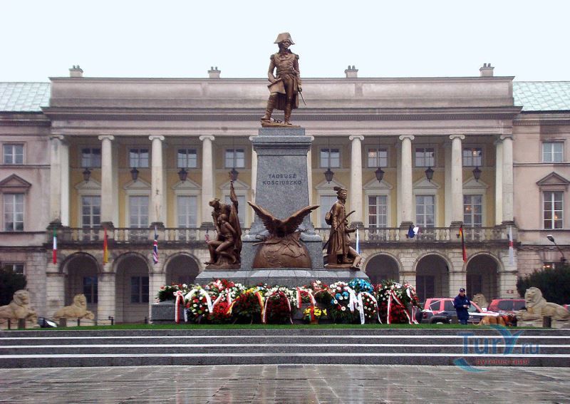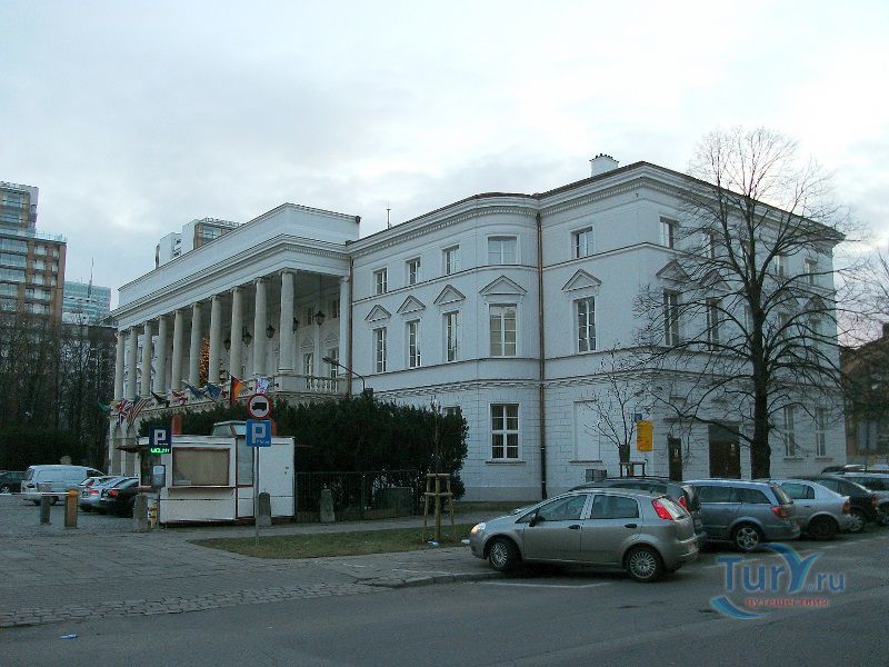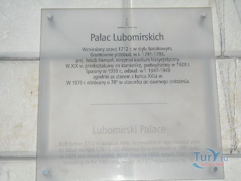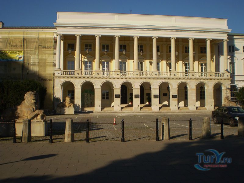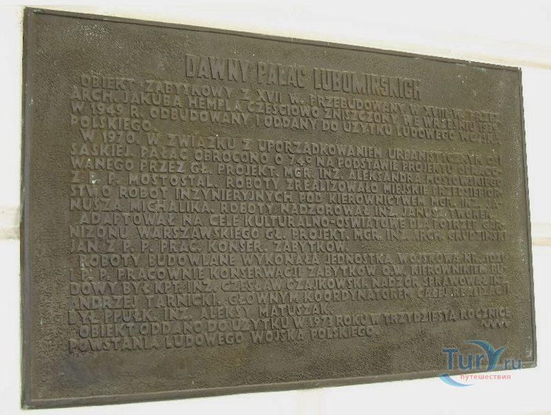 Дворец Любомирских был возведён в конце 17 века, затем был перестроен в стиле барокко, а позже с 1791 по 1793 годы проведена реконструкция в классическом стиле новым владельцем дворца польским князем Александром Любомирским. Были достроены двухэтажные флигели и колоннада из десяти колонн. Руководил реконструкцией Иоахим Хемпель. В 1828-1834 годах дворец принадлежал Польскому королевству, а во время Ноябрьского восстания в здании дворца размещались госпиталь и другие различные учреждения. С 1834 года здание перешло к финансисту Аврааму Саймону Коэну, который организовал здесь еврейский молитвенный дом, квартиры и магазины. В 1928 году к дворцовому зданию достроили очередной этаж и дворец превратился в жилой дом. Руководил реставрацией дворца Вацлав Мошковский, целью которого было превращение дворца в многоквартирный дом, разрушая этим исторический характер здания. С 1938 года владельцем здания стала Варшавская мэрия. Было принято решение отремонтировать здание дворца, но из-за начала Второй мировой войны ремонтом не занимались. Во время осады Варшавы в сентябре 1939 года дворец был сожжён немцами. После окончания войны дворец был восстановлен. В 1947-1950 годах под руководством Тадеуша Журовского были проведены реставрационные работы в неоклассическом стиле. В 1970 году было решено развернуть здание Дворца Любомирских по отношению к первоначальному положению на 78 градусов на специальных фермах. Проект был разработан Маршалом Польской Народной армии Марианом Спыхальским, работы длились на протяжении шести недель, с 30 марта по 18 мая 1970 года. В настоящее время в здании Дворца Любомирских на первом этаже расположен один из корпусов Варшавского университета, на других этажах расположены бизнес-центр и клуб.