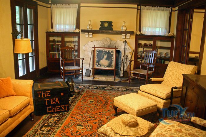 Внутри двухэтажного дома посетители увидят комнаты с фамильными вещами и удивительными вышедшими из употребления бытовыми приборами, например, старинным холодильником.