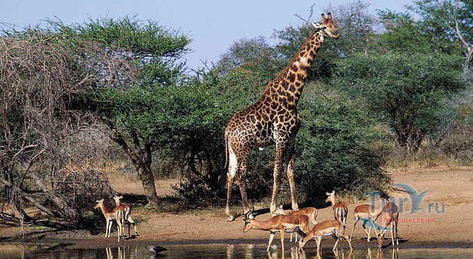 Парк Крюгера, расположенный в северной части ЮАР, на востоке Трансвааля, между реками Крокодиловая и Лимпопо, можно по праву назвать самым старым парком страны. Его история берет свое начало с 1884 года, когда президент Трансвааля выступил с инициативой создания природоохранной зоны. В 1898 году на территории между реками Саби и Крокодиловая был создан заповедник с полным запретом охоты, а 31 мая 1926 года заповедник преобразовывается в парк Крюгер, ставший первым национальным парком в ЮАР. Разница между заповедником и национальным парком заключается в следующем: в заповеднике запрещена вообще любая деятельность человека, а в национальном парке допускается туризм. Благодаря допуску туристов, Национальный парк Крюгера стал одним из самых популярных мест для экскурсий, куда съезжались раньше и съезжаются в наши дни многочисленные любители африканской дикой природы. На сегодняшний день общая площадь парка составляет 18 989 км2. С севера на юг протяженность парка составляет 340 километров. Реки Саби и Олифантс формируют три главные части парка: южную, центральную и северную. Кроме этого, вблизи границы с Мозамбиком в парке находится горный массив Лебомбо. Климат в парке является переходным от тропического к субтропическому, поэтому для лета здесь типична влажная и жаркая погода, а температура воздуха зачастую превышает 40 градусов по Цельсию. Сезон дождей начинается в сентябре, а заканчивается в мае. Поэтому самым благоприятным временем для посещения парка является сухой зимний период. В Национальном парке для туристов оборудовано более 20 лагерей для отдыха и временного проживания. Каждый лагерь располагается на территории, характерной для обитания определённой группы животных и птиц. Ежегодно парк Крюгера посещает около миллиона туристов из разных стран мира. Территориально растительный мир национального парка имени Крюгера подразделяется на шесть эко-систем, постепенно переходя от саванны к редколесьям и приречным лесным зарослям. Здесь, в общей сложности, насчитывается 1982 вида растений, а 17 из 47 видов деревьев, находятся под охраной государства. Стоит так же отметить гордость и главную достопримечательность африканского растительного мира - баобаб, дерево необъятной толщины, окружность ствола которого достигает 25 метров. На территории национального парка имени Крюгера обитают 527 видов птиц и 147 видов диких животных - это больше, чем в любом другом африканском национальном парке или заповеднике. По состоянию на 2009 год в парке Крюгера численность основных видов млекопитающих приблизительно составляла: 90 000 антилоп импала, 9 600 антилоп гну, 300 антилоп канна, 27 000 африканских буйволов, 4 500 белых носорогов, 350 чёрных носорогов, 3 000 бегемотов, 17 800 зебр, 11 700 слонов, 5 100 жирафов. Разнообразен и хищный мир парка. Здесь можно увидеть: пятнистых гиен, диких африканских охотничьих собак, гепардов, леопардов и, конечно же, львов. Не только разнообразный растительный и животный мир привлекает сюда туристов. Парк интересен и любителям истории и археологии. На территории парка были обнаружены следы одних из первых первобытных людей «Homo erectus», которые жили здесь более полумиллиона лет назад. На территории парка находится около 130 мест наскальной живописи, более 300 археологических объектов, включая руины, где можно ознакомиться с артефактами кам