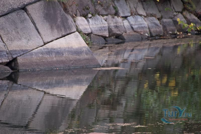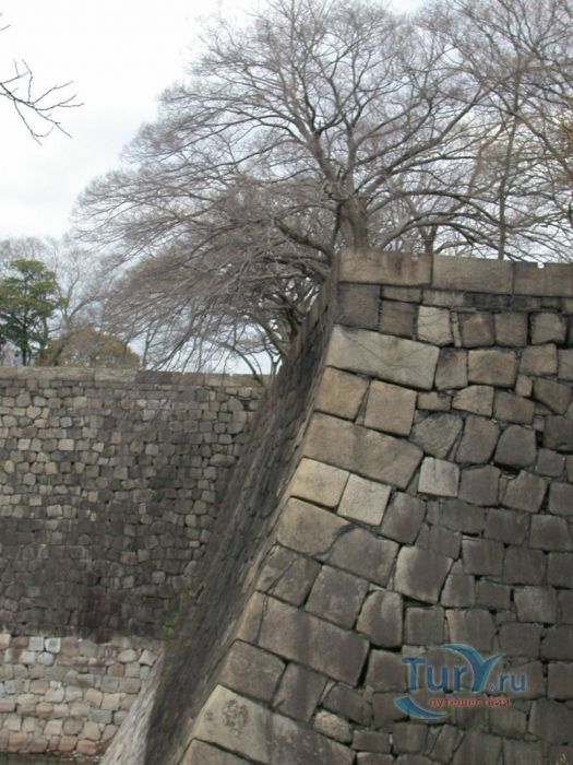 Блоки камня, из которых были сделаны стены, транспортировались от карьеров более чем на расстоянии в 100 километров. Их явная высота, которая возвышается по обширным рвам, едва ли может быть подобна другим в Японии.