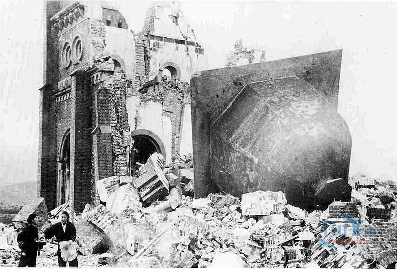 Атомная бомба, которая упала на Нагасаки 9 августа 1945 года, взорвались в 500 м от собора, полностью уничтожив его. Замена была построена в 1959 году, после серьезных обсуждений между правительством города Нагасаки и правительством государства.