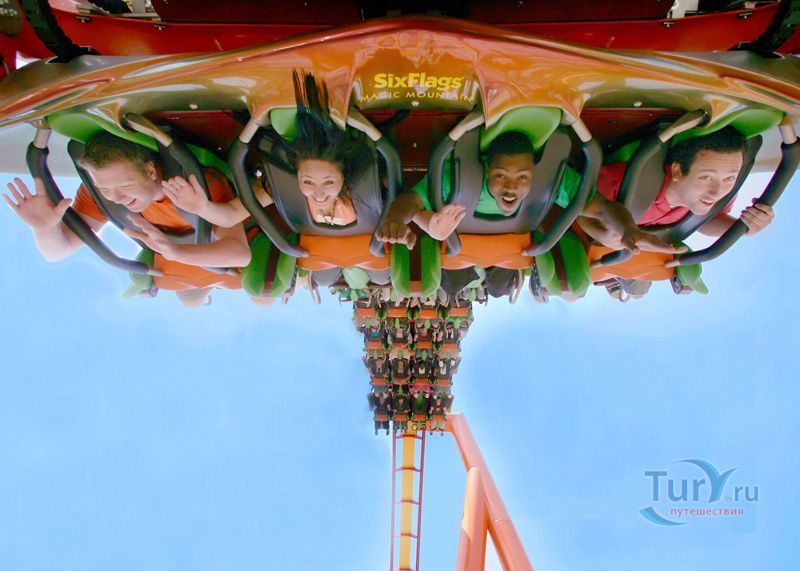 Волшебная Гора Сикс Флагс является одним из самых больших парков с горками в США. Он занимает территорию в 1 квадратный километр и имеет в своем составе более 50 горок.