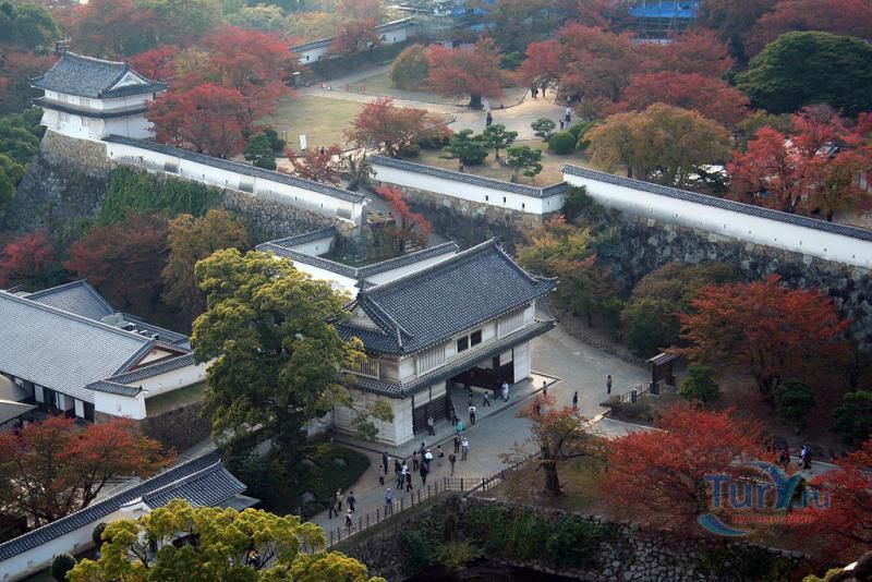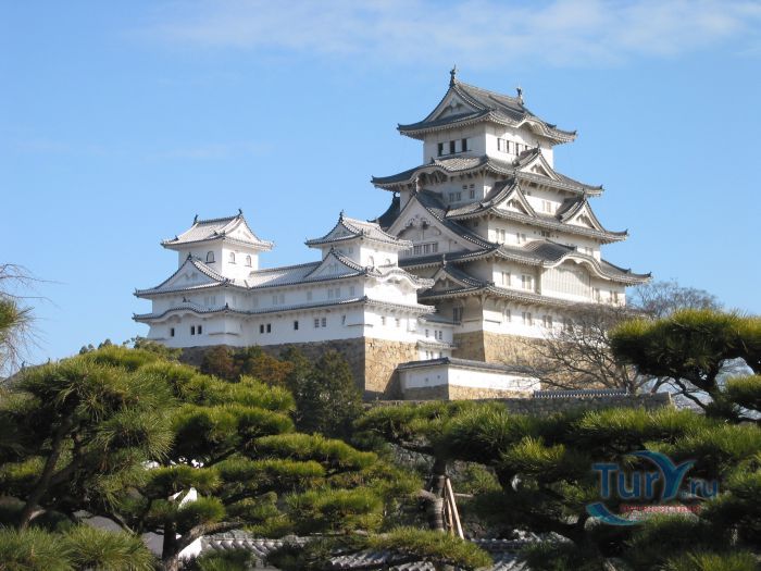Замок Белой Цапли (Замок Химэдзи) расположен в небольшом местечке Харима острова Хёго у основания горы Химэ. Строительство замка было начато князьями Акамацу в 1333 году, когда на горе Химэ началось строительство оборонительных укреплений. Закончилось строительство замка спустя 13 лет. Из-за постоянных междоусобных войн замок до 16 века сменил десятки хозяев, переходя во владение от одной самурайской династии к другой. В 1577 году видный военно-политический деятель японской истории - самурай Ода Нобунага взял под свою власть район Харима, а замок Химэдзи передал во владение выдающегося политического лидера тех лет Тоётоми Хидэёси. К тому времени замок Химэдзи сильно пострадал от постоянных междоусобиц и требовал капитального ремонта, который был начат полководцем Тоётоми в 1601 году. За последующие 17 лет был сформирован нынешний облик крепости. Были отремонтированы старые здания и укрепления, воздвигнуты новые стены с 30 башнями. На самом высоком месте холма была установлена семиярусная тэнсю — главная башня цитадели, высота которой составляла 46 метров. Переходы в соседние строения стали возможны через крытые коридоры и проходы. Оборонительные укрепления башни представляли собой колонны из дерева длиной около пятнадцати метров вдоль высоты строения. Вспомогательные башни имели по 4 этажа, и лишь северо-западная – пять этажей, но два этажа скрыты от взора, видны только 3. В крепости было 84 ворот. Каждые ворота были отдельным произведением архитектуры, с особенной конструкцией, формой окон и декором. Попасть внутрь Химэдзи было непросто даже в мирное время. Сначала чужаку пришлось бы переплыть ров с водой, окружающий замок, потом долго бродить по обширному спиралевидному саду-лабиринту. Планировалось, что из бойниц, амбразур и оборонительных постов самураи будут обстреливать заблудившегося неприятеля сразу с трёх сторон. На случай длительной осады в Химэдзи были предусмотрены оружейные и продовольственные склады, стойла для скота и колодцы. Однако никакие оборонительные цели замку выполнять не пришлось, поскольку за свою историю он ни разу не подвергался нападениям и не принимал участие в боях. Замок не разрушался во время землетрясений, его не тронули пожары. Даже во время Второй мировой войны окрестности замка пострадали от бомбардировок американской авиации, но сам он остался невредимым. Замок Белой Цапли один из немногих японских замков. которые дошли до нас в своём первозданном виде. Говорят, что везучесть замка передалась и его хозяевам. В замке есть харакири-мару, двор для ритуальных самоубийств сэппуку. Однако и он не был ни разу использован по назначению. Говорят, что замок оберегает и синтоистский храм, расположенный на верхнем этаже Главной башни. Храм, построенный на горе задолго до замка, при строительстве крепости перенесли в другое место, что принесло местным жителям много проблем (природные катаклизмы и неурожаи). Когда Святилище вернули на свое место, на земле вновь воцарилась гармония. Именно в этом святилище, по преданию, обитает душа легендарного самурая Миямото Мусаси, написавшего «Книгу пяти колец» о стратегии и философии военного ремесла. Кроме всего прочего, крышу Химэдзи украшает сятихоко – мифическое существо рыба-тигр. Оно обладает магическими свойствами, притягивает дождь и оберегает строен