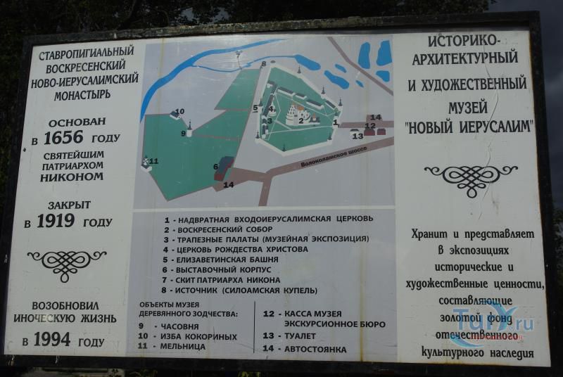 Эта обитель находится в Московской области по Рижской дороге в городе Истре. Основание монастыря относят к 1658 году. Основателем и первым строителем его был патриарх Никон. Получив разрешение от царя Алексея Михайловича, патриарх Никон посылает ученого иеромонаха Троице-Сергиевой лавры Арсения Суханова в сам Иерусалим, чтобы привезти чертежи и планы. Началось строительство. Никон решил построить храм, наделенный редкой декоративностью. К осуществлению задуманного были привлечены не только русские зодчие, но и белорусские мастера, славившиеся умением выполнять рельефные изразцы и ажурную резьбу по дереву. Но Никону не было суждено завершить строительство монастыря, он был сослан простым монахом в Ферапонтов монастырь. После смерти царя Алексея Михайловича на трон взашел его сын Федор Алексеевич и в 1679 году повелел продолжить начатое строительство и вернуть Никона из ссылки. Никон скончался на обратном пути. Его тело было привезено и похоронено здесь. Строительство монастыря закончилось только при Елизавете Петровне.