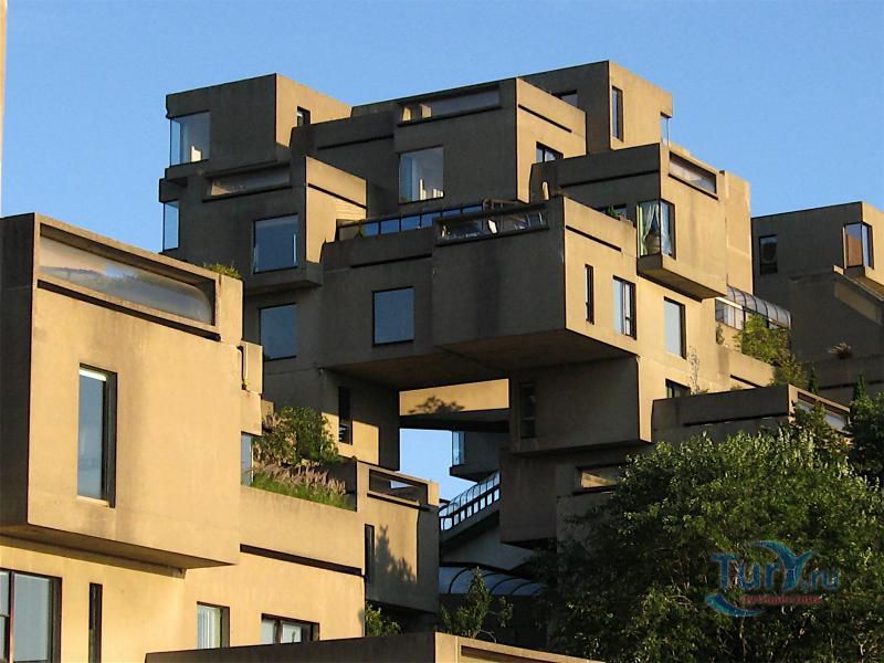 В основу Хабитат 67 была положена идея: объединить разрозненные частные дома с придомовыми участками в единый комплекс. Именно так архитектор Моше Сафди поступил с 346 кубами, наращенными друг на друга. В этом здании, название которого переводится, как «среда обитания», 146 квартир. Каждая из них имеет свой сад. При этом каждый дом-квартира остается самостоятельной и независимой жилой площадью так, как будто просто стоит на земле на отдельном участке.