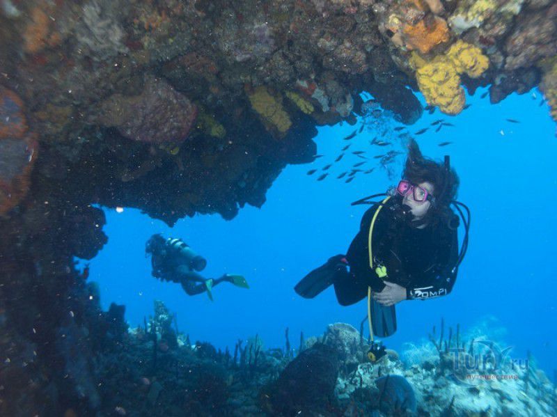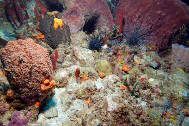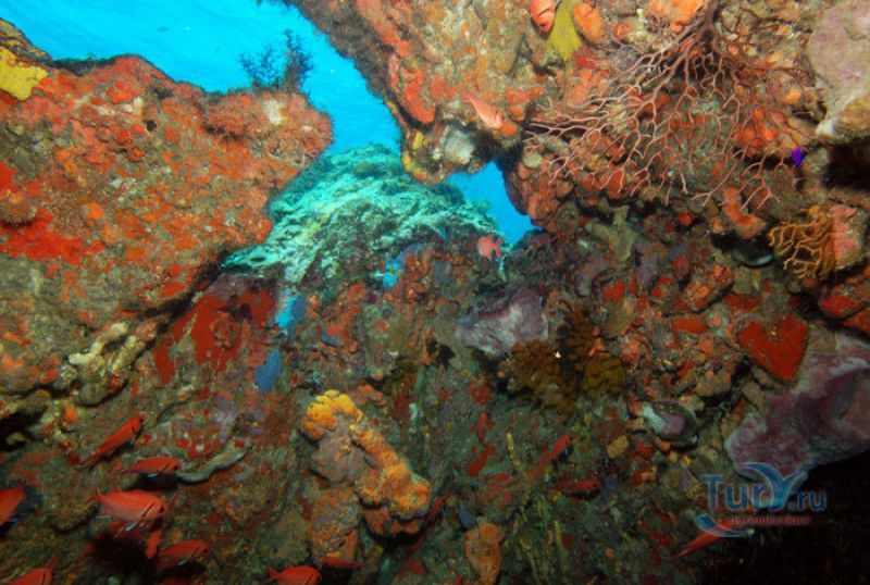 Главная Башенка Скотта - оправданно один из самых известных участков погружения острова; дайверы регулярно просят повторные посещения на этот участок. Погружение начинается на Свис Чиз, большом горном формировании - домом известной Пещеры Солдерфиш. Это фактически не пещера, можно проплыть сквозь нее. Там обычно много рыбы солдата и рыбы ворчуны, которые формируют занавес перед Вами, кратко отделяясь, чтобы проглотить Вас в косяк, как только Вы проплываете сквозь них. Пересечение плоской области коралла инкрустируемые горныим формированиями приводит к Башенке непосредственно. На глубине всего 35 футов живописное плавание делит пополам башенку, принося Вас к "другой стороне" - крутая стена на внутренней части вулканического кратера, который уходит вниз более чем на 120 футов. Плавание обычно полно рыб-солдат, и омаров.