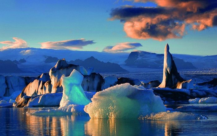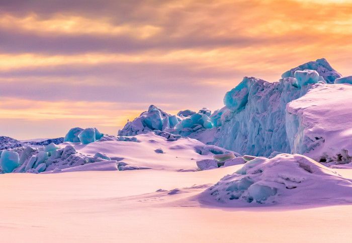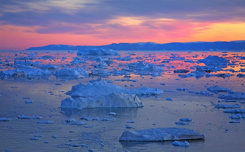 Это страна айсбергов, где нет места маленькими кубиками льда вроде тех, что мы привыкли кидать в стаканы с напитками. Глетчеры могут дрейфовать на расстояние до 30 метров в день. Очень часто от больших айсбергов откалываются другие помельче, самые мелкие из которых могут весить около 7 млн. тонн. Залив Диско Бэй расположен у западного побережья острова Гренландия, в море Баффина. На севере залива расположен остров Диско, площадь которого - 8578 квадратных километров. Остров представляет собой расчленённое базальтовое плато, пятая часть которого покрыта ледниками. В летний период в пяти главных населённых пунктах, расположенных на побережье залива, - Кангаатсиаг, Илулиссат, Кегертарсуаг, Касигианнгуйт и Аасиаат, можно в полной мере ощутить прелесть полярных дней и увидеть, как ярко сияет солнце в полночь. Если вид ослепительно-белых глетчеров утомит ваши глаза, то рекомендуем совершить пешие прогулки по островам. Каждый из них хорош по-своему.