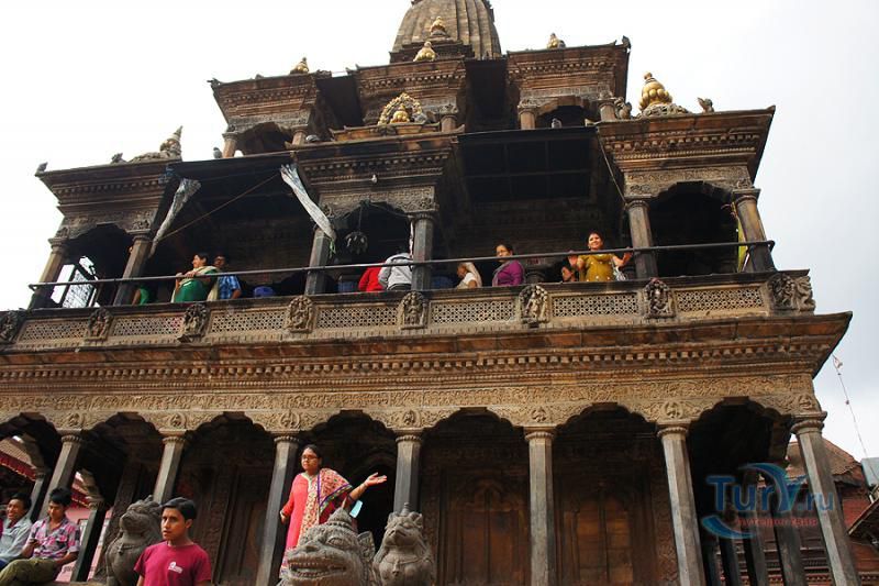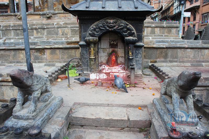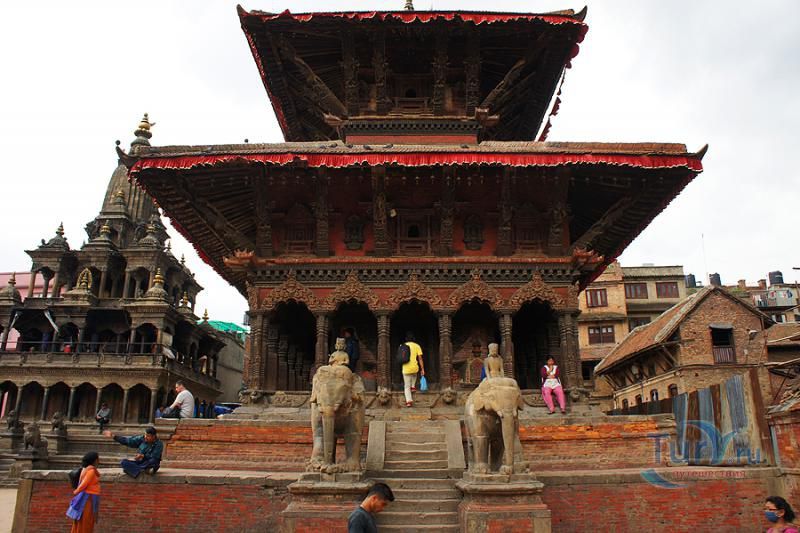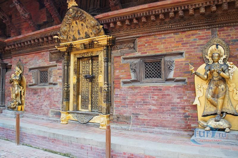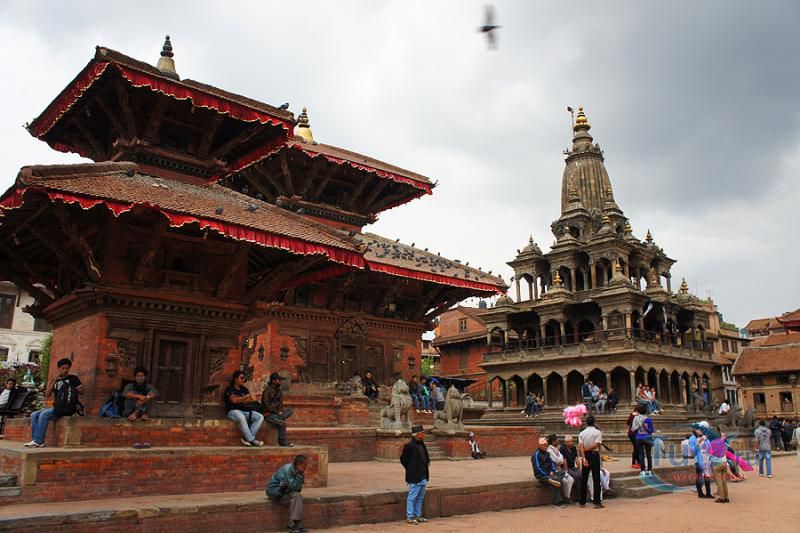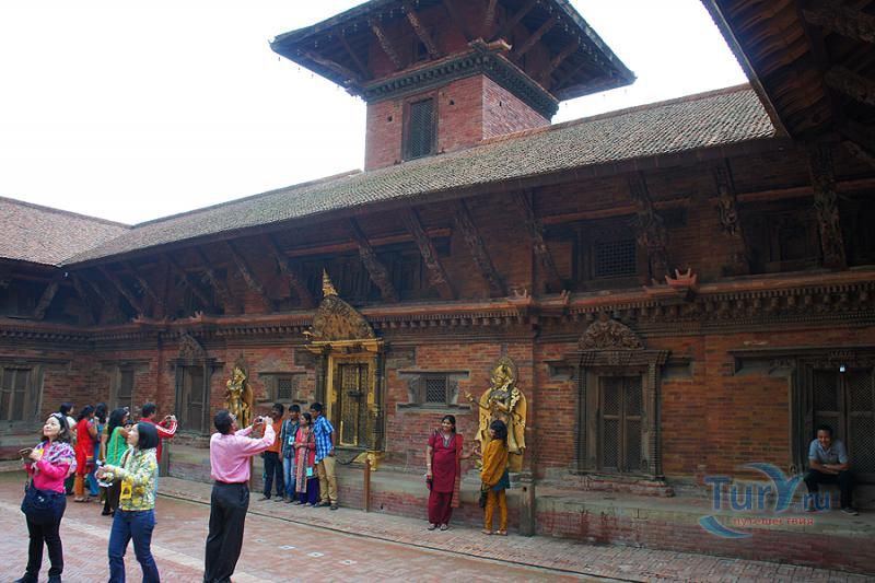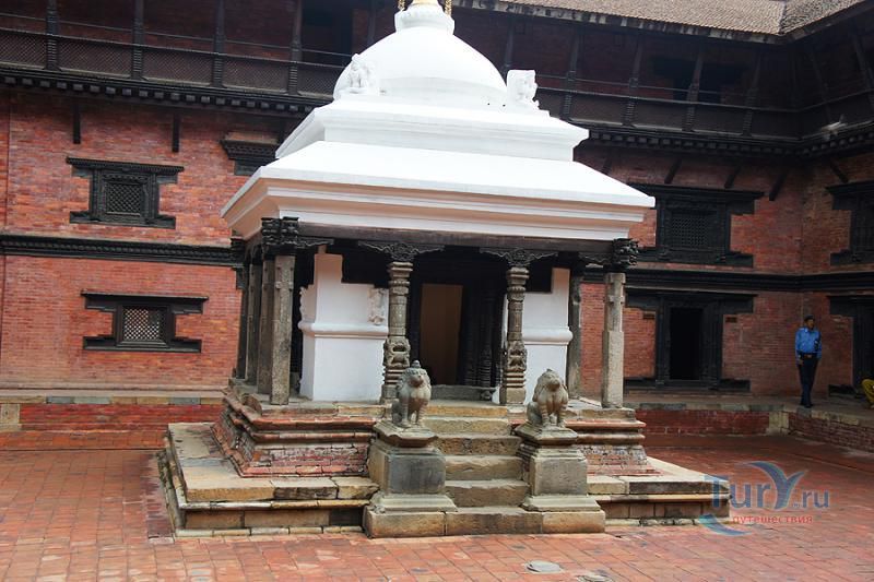 Одна из главных достопримечательностей площади - Старинный Королевский Дворец, где обитали правители Лалитпура. Площадь Дурбар это чудо архитектуры древних времен. Площадь вымощена красным кирпичом, на ней расположено множество храмов и религиозных идолов. Главные храмы находятся напротив западной стороны дворца. Входы в храмы направлены на восток, лицом к дворцу. Также неподалеку от дворца находится большой колокол. Площадь Дурбар, а также различные храмовые постройки, расположенные на ней, демонстрируют нам отличный пример архитектуры народа Нева.