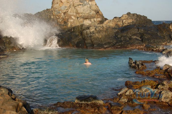 На заброшенном участке побережья вы увидите драматические шоу распыление воды над скалами, которое происходит на регулярной основе, как только прилив спешит на берег. В уникальном формировании породы, вулканические каменные круги небольшого размера, создают спокойный бассейн и называются "conchi" или "Cura ди Тортуга", или более знакомо посетителями под названием "природный бассейн".