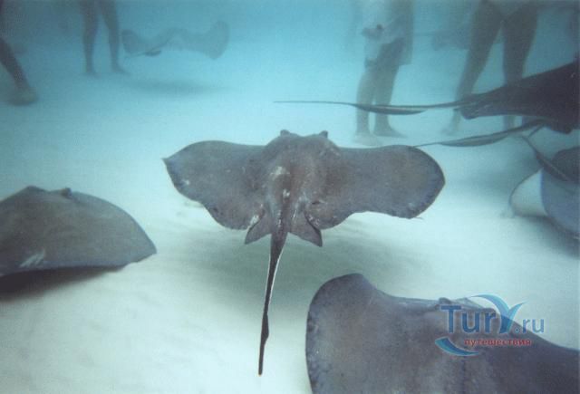 Скаты начали собираться в этой области несколько десятилетий назад, когда рыбаки имели обыкновение чистить рыбу на мелких песчаных наносах. Скаты сразу забывали свою обычную застенчивость и устраивали банкет на кишках от очищенной рыбы. Скоро скаты начали связывать звук двигателя лодки с пищей. В конце 1980-ых дайверы начали кормить скатов кальмарами, которые являеются одним из их любимых блюд. Полумайте об абсолютно уникальном опыте, который вы можете получить только раз в жизни и только здесь. Сколько бы Вы входили в совершенно прозрачные бирюзовые воды, вы всегда увидите щдесь изящное скольжение небольших стай скатов, спокойно проплывающих мимо Вас в их естественной среде обитания. Наслаждайтесь этим уникальным опытом прикосновения к живой природе и кормления скатов, вместе с нырянием в масках среди великолепных коралловых рифов и красочной тропической рыбы. Стоя только в трех футах в воде Вы будете окружены больше чем двумя дюжинами дружелюбных скатов. Город Ската в Великом Каймане - интересная забава и подходит для всех возрастов туристов.