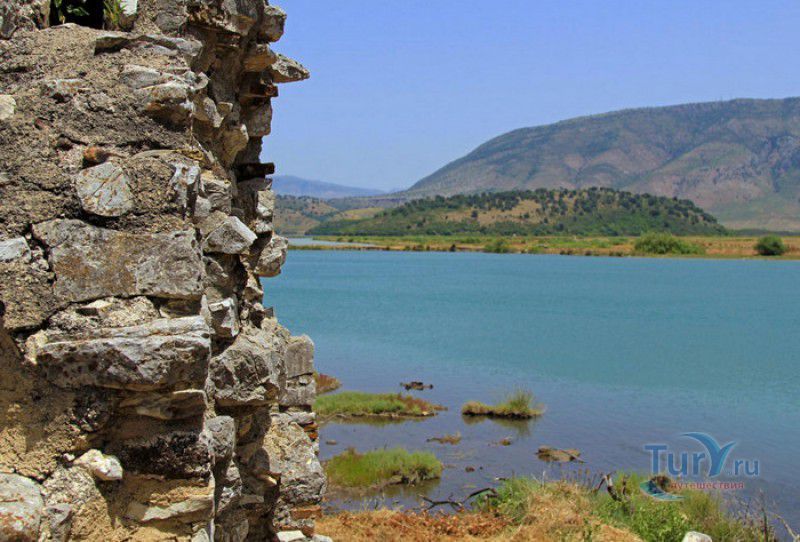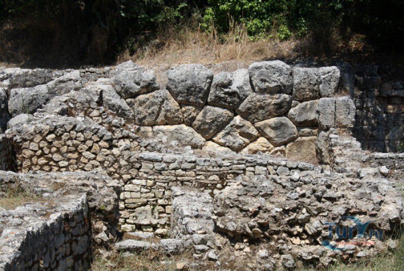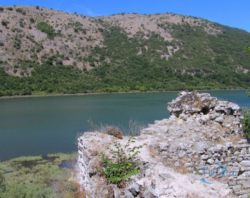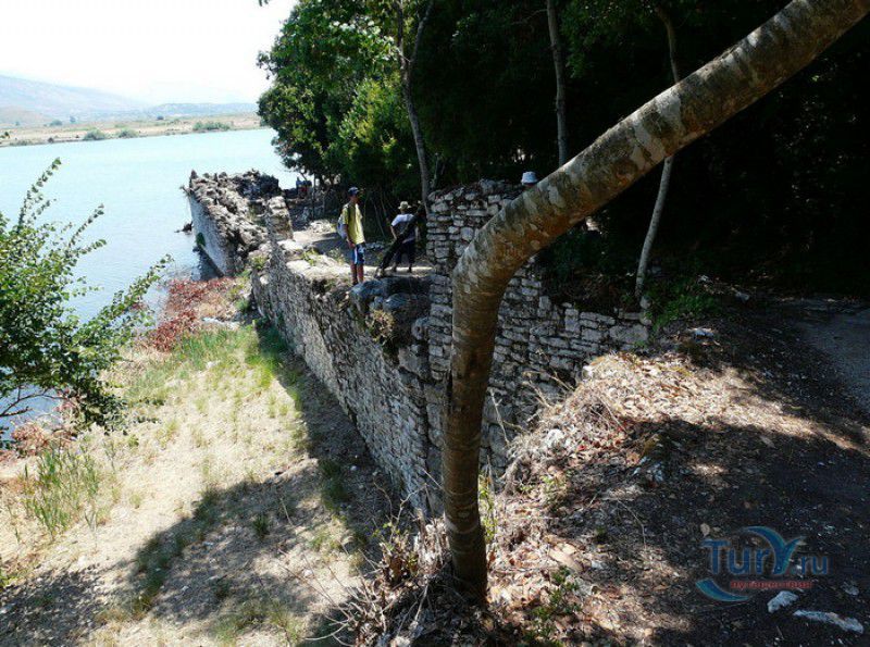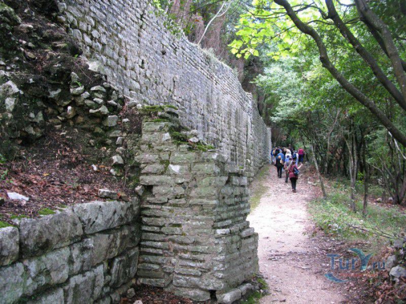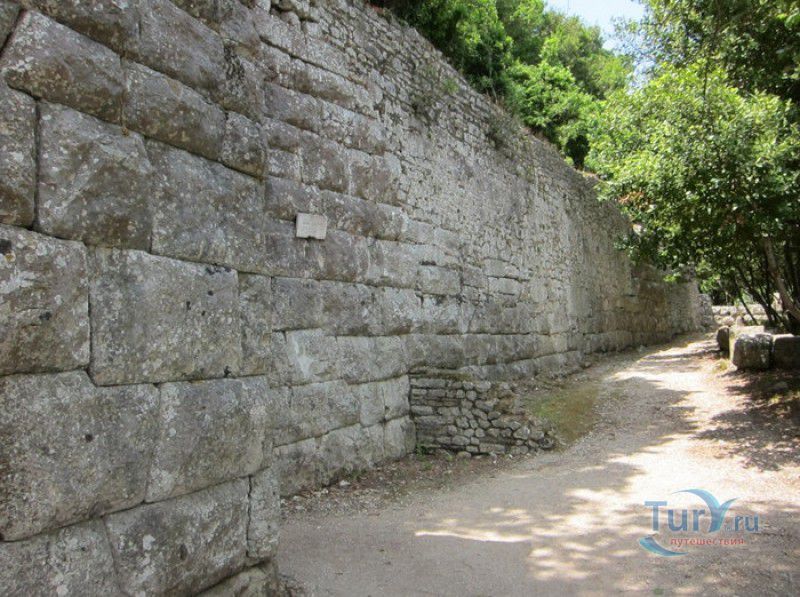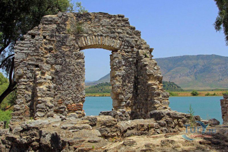 Эллинистическое укрепление округлой формы с шестью сводчатыми воротами было установлен в Бутринте, чтобы отделить область, идущую вокруг более низкого части холма. Укрепление стен пережило два периода реконструкции, хотя нет никакого документального свидетельства, чтобы доказать это. Новые стены были сделаны из блоков, умело совмещенных между собой без раствора. Отвесы, шириной в кулак были выгравированы инженерами. Луиги Уголини предполагал, что они должны были гарантировать правильный, прямой ряд блоков; Хаммонд обсуждал это и говорил, что они были удобными для водосточных труб. Чем бы это ни было продиктовано, точность строителей просто поразительна. Прекрасно сохранившиеся ворота - так называемые Ворота Озера - являются архитектурной жемчужиной. Просто сделанная высокая перемычка скрывает каменные части, поддержанные карнизами. Та же самая техника использовалась в Воротах Льва. Ворота на северной и западной стороне, ведущие к западному концу акрополя гораздо хуже сохранились. Главный вход – Ворота Башни - лежащие на южной стороне, обеспечивали доступ к прибежищу Асклепиус от Канала Вивари. Это было внушительным входом, сделанным из меньших по размеру блоков между круглой башней на одной стороне и прямоугольной башней на другом. Хироумные механизмы в передней части ворот давали охранникам возможность управлять доступом через ворота. Деревянные ворота венчают начало и конец прохода длиной 7 метров, проходящего между этими двумя башнями.