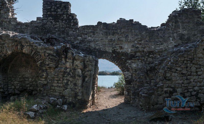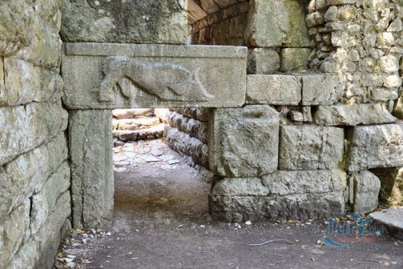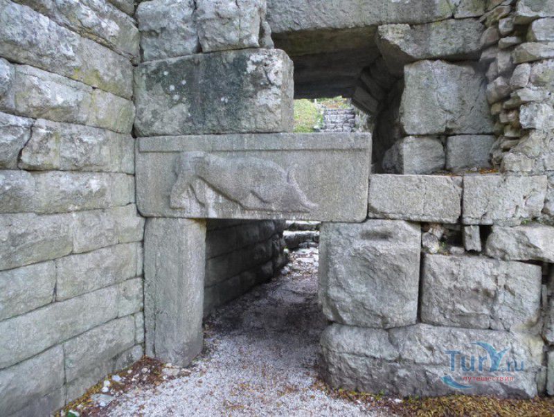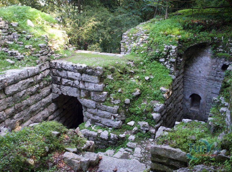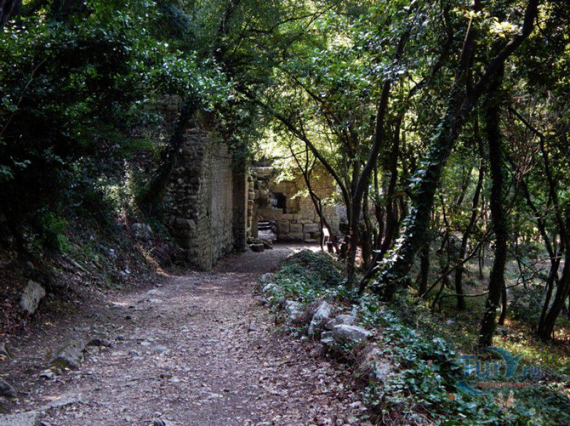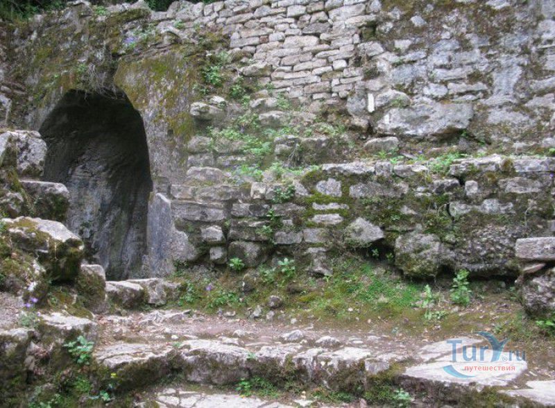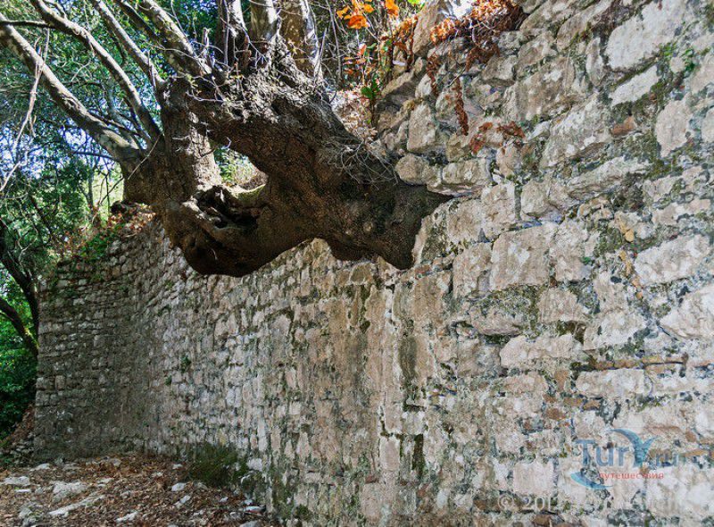 Эллинистическое укрепление округлой формы с шестью сводчатыми воротами было установлен в Бутринте, чтобы отделить область, идущую вокруг более низкого части холма. Укрепление стен пережило два периода реконструкции, хотя нет никакого документального свидетельства, чтобы доказать это. Новые стены были сделаны из блоков, умело совмещенных между собой без раствора. Отвесы, шириной в кулак были выгравированы инженерами. Луиги Уголини предполагал, что они должны были гарантировать правильный, прямой ряд блоков; Хаммонд обсуждал это и говорил, что они были удобными для водосточных труб. Чем бы это ни было продиктовано, точность строителей просто поразительна. Прекрасно сохранившиеся ворота - так называемые Ворота Озера - являются архитектурной жемчужиной. Просто сделанная высокая перемычка скрывает каменные части, поддержанные карнизами. Та же самая техника использовалась в Воротах Льва. Ворота на северной и западной стороне, ведущие к западному концу акрополя гораздо хуже сохранились. Главный вход – Ворота Башни - лежащие на южной стороне, обеспечивали доступ к прибежищу Асклепиус от Канала Вивари. Это было внушительным входом, сделанным из меньших по размеру блоков между круглой башней на одной стороне и прямоугольной башней на другом. Хироумные механизмы в передней части ворот давали охранникам возможность управлять доступом через ворота. Деревянные ворота венчают начало и конец прохода длиной 7 метров, проходящего между этими двумя башнями.