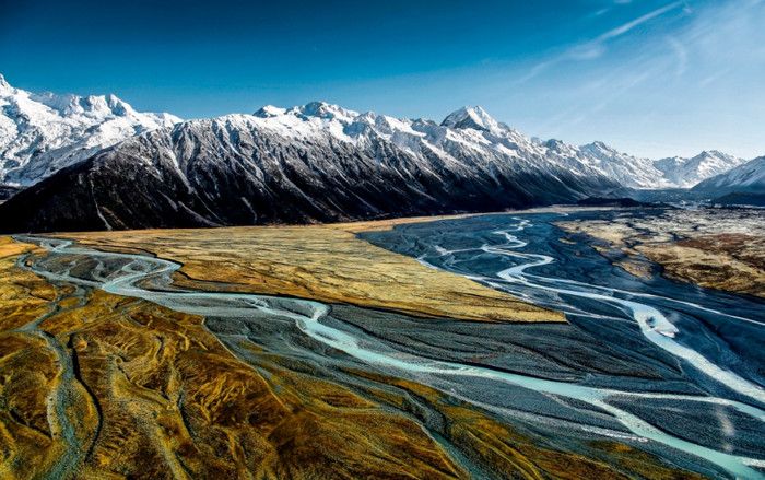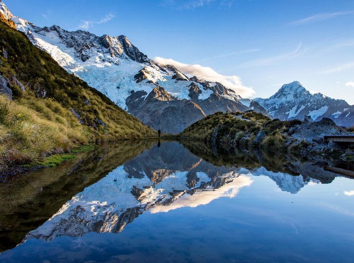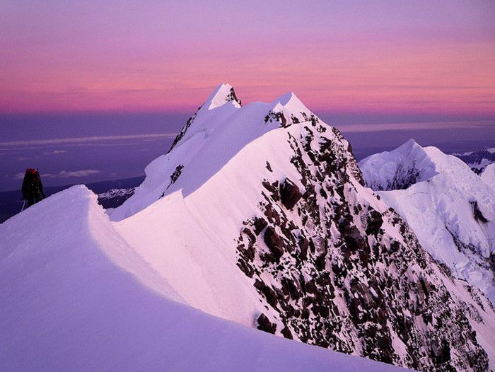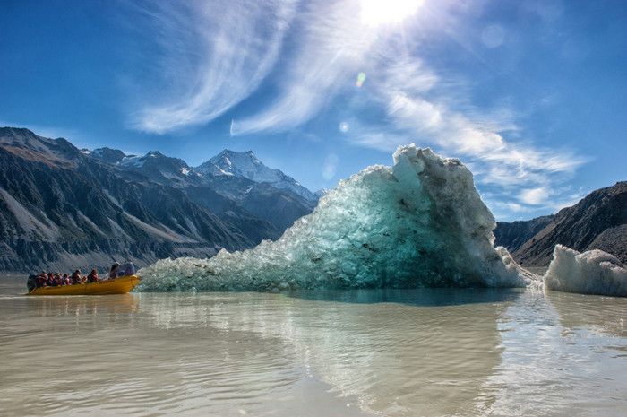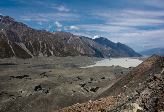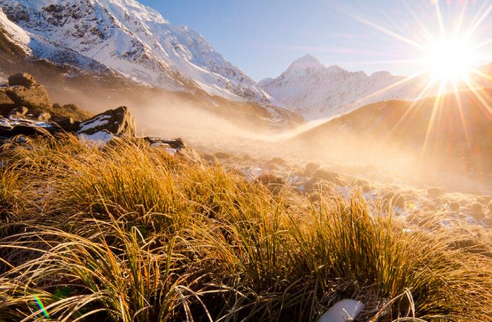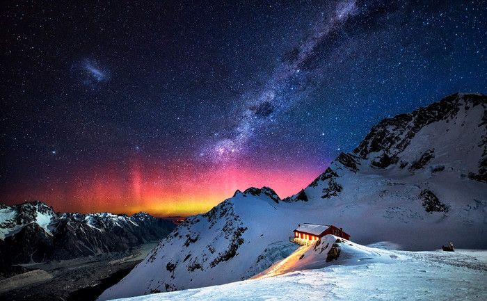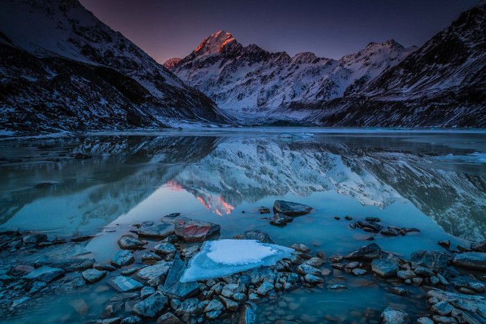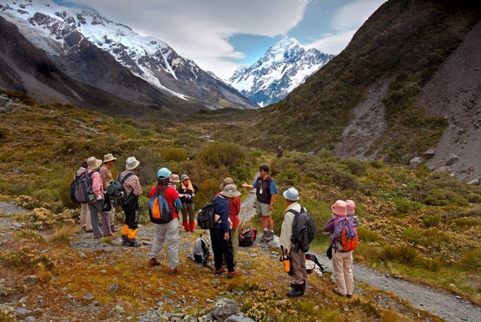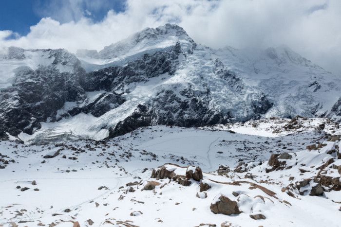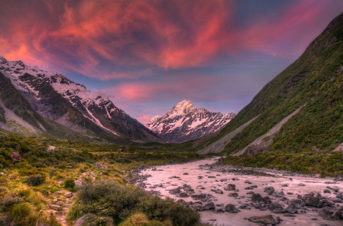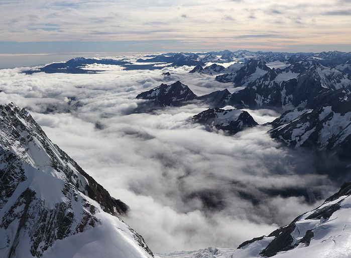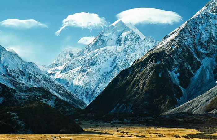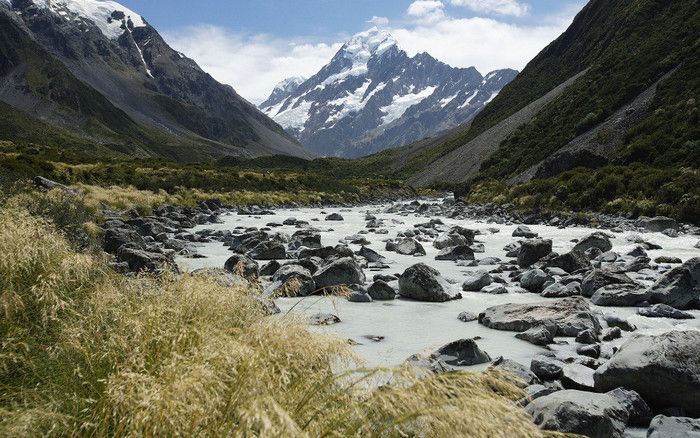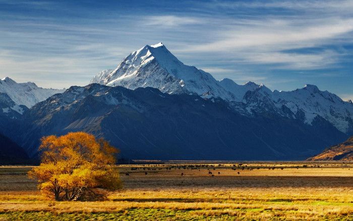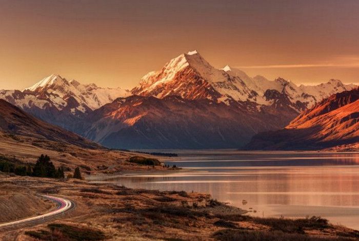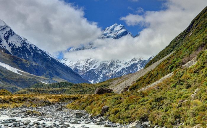 Гора Кука (Аораки) - наивысшая точка Новой Зеландии, высота которой составляет 3754 метра над уровнем моря, расположена в западной части Южного острова, в новозеландских Южных Альпах, на территории Национального парка Маунт-Кук. Гора состоит из трёх пиков - самый низкий из них имеет высоту 3593 метра над уровнем моря, средний - 3717 метров и самый высокий - 3754 метра (совсем недавно его высота равнялась 3764 метрам, но из-за сильного оползня, произошедшего 14 декабря 1991 года, гора стала ниже на 10 метров). Гора Кука сложена из кристаллических пород, имеет форму седла с крутыми склонами, а её вершина покрыта вечными снегами и ледниками. Вдоль восточного фланга горы спускается знаменитый ледник Тасмана - крупнейший ледник в Новой Зеландии, протяжённостью 29 километров и площадью 156,5 квадратных километров. Нижняя часть горных склонов покрыта уникальными дождевыми лесами умеренного климата и живописными альпийскими лугами, в которых произрастают эндемичные виды растений и редкие виды животных, встречающиеся только в Новой Зеландии. Для маори, коренного населения Новой Зеландии, Аораки является священной горой, на языке племени Нгай Таху название горы означает "большое белое облако". Существует красивая местная легенда о происхождении горы, которая рассказывает о том, как сыновьях Ранги (Небесного Отца) отправились в плавание на каноэ вокруг Папатуануку (Матери Земли). Во время плавания их лодка села на риф, и чтобы не утонуть, братья взобрались на нос каноэ, но налетевший холодный ветер обратил их в камень. Каноэ (у маори оно называется вака) превратилось в Южный остров (Те Вака о Аораки), а братья стали вершинами Южных Альп - так как юноша по имени Аораки был самым высоким из братьев, его именем и была названа гора Аораки. Английское название Mount Cook (Гора Кука) дал горе в 1851 году капитан Джон Лорт Стокс в честь знаменитого мореплавателя Джеймса Кука, исследовавшего побережье Новой Зеландии и открывшего пролив, разделяющий её на два острова. Интересно, что саму гору Джеймс Кук даже не видел - первым европейцем, увидевшим Аораки, был голландский мореплаватель Абель Тасман, высадившийся на берег Южного острова в 1642 году. Первая попытка подняться на Аораки была предпринята в 1882 году - вершину штурмовали ирландец Уильям Споттвуд Грин и швейцарцы Эмиль Босс и Ульрих Кауфман. Когда до вершины оставалось всего 200 метров, альпинисты вынуждены были завершить восхождение из-за сильного снегопада. Покорить гору Кука удалось в 1894 году трём новозеландцам - Тому Файфу, Джеку Кларку и Джорджу Грэму. Первой женщиной, поднявшейся на гору, стала австралийка Фреда Ду Фоур - она совершила восхождение в 1910 году, а в 1916 году на Аораки, в сопровождении знаменитого австрийского горного проводника Конрада Каина, поднялась 57-летняя новозеландская альпинистка Джейн Томсон. С момента открытия горы европейцами, её вершина постоянно манит альпинистов со всего мира. Несмотря на то, что Аораки - далеко не самая высокая гора на планете, она является технически очень сложной для восхождения. Огромную опасность для альпинистов представляют резкая смена погоды, сильные снегопады, высокий уровень обледенения скал, большие трещины ледников и высокая вероятность внезапного схода лавин. Только с начала XX века при восхождении на гору Кука погибло около 80 альпинистов, что делает её самым 