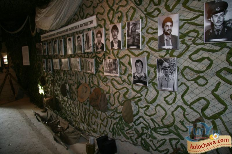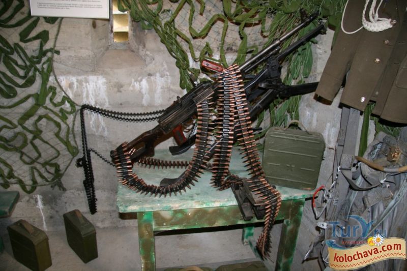 Вход в музей преграждают тяжелые железные двери, внутри - как в настоящем бункере - множество различных орудий войны: автоматы калашникова, ручной пулемет, перископ, бинокль, несколько противотанковых мин, огнемет, полевой телефон, солдатские алюминевые кружки, фляги, солдатские кирзовые сапоги, медицинские инструменты и много других военных вещей. На стенах развешаны фотографии колочавцев - интернационалистов. Под потолком натянут купол парашюта.