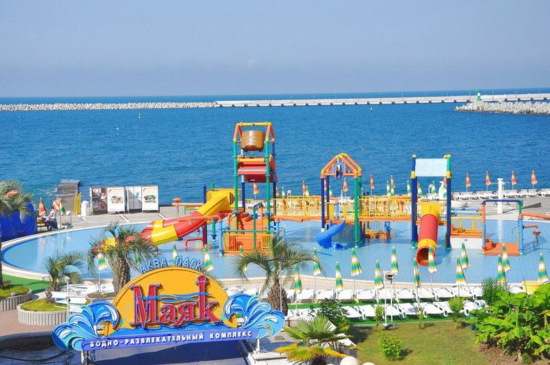 Водно-развлекательный комплекс "Аквапарк "Маяк" открыл свои двери для посетителей в середине июля 2000 года, став с первых дней любимым местом отдыха для всего Сочи и гостей курорта. Находится в самом сердце развлекательного центра Сочи - на побережье напротив концертного зала «Фестивальный» - и имеет прямой выход к морю. Если вам хочется ощутить настоящий европейский комфорт и уют, провести день, как на дорогом элитном курорте - приходите сюда. Открывая собой череду пляжей Центральной набережной города, выглядит островом комфорта и респектабельности, где всё создано для беззаботного отдыха: пресная и морская вода, пластиковые лежаки и шезлонги, раздевалки и централизованный гардероб с индивидуальными сейфами, зонты, душевые с горячей и холодной водой. Но главное, конечно, аттракционы на любой вкус: десять разнообразных горок, детский водный городок, игровой комплекс - корабль, сплав на надувных плотах. Кроме того, на территории комплекса имеются различные кафе и бары с прекрасной кухней и профессиональным обслуживанием. Безопасность отдыха гостей аквапарка гарантирована слаженной работой квалифицированных специалистов - инструкторов, охранников.