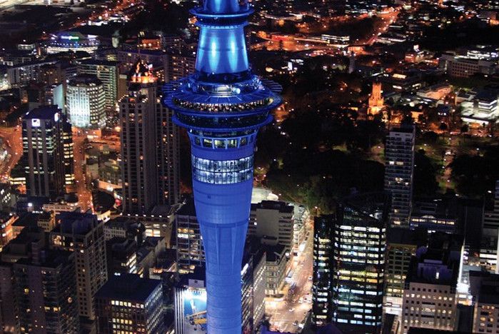 Башня Скай-Тауэр - самое высокое здание в Южном полушарии нашей планеты, расположена в Новой Зеландии, в городе Окленд. Высота башни - 328 метров, она построена из стекла и железобетона всего за 2 года и 9 месяцев (1994-1997 годы) и способна выдерживать штормы с порывами ветра до 200 километров в час и землетрясения мощностью до 8 баллов. На три смотровых площадки, расположенные на высоте 220 метров, посетителей поднимают три стеклянных лифта, их общая пропускная способность за раз - 225 человек, а длительность подъёма - всего 40 секунд. Со смотровых площадок открывается потрясающий вид на Окленд и его окрестности, в ясную погоду дальность видимости составляет 80 километров. В Скай-Тауэр есть несколько ресторанов, в том числе Orbit 360˚- вращающийся ресторан на вершине башни, множество кафе и баров. В башне расположены два отеля (Skycity Hotel и Skycity Grand Hotel), казино, театр, развлекательный комплекс SKYCITY Auckland и конференц-центры. Любители банджи-джампинга могут совершить головокружительный прыжок с высоты 192 метров, скорость полёта при этом составляет 85 километров в час. Ежедневно Скай-Тауэр посещают более 1500 человек.