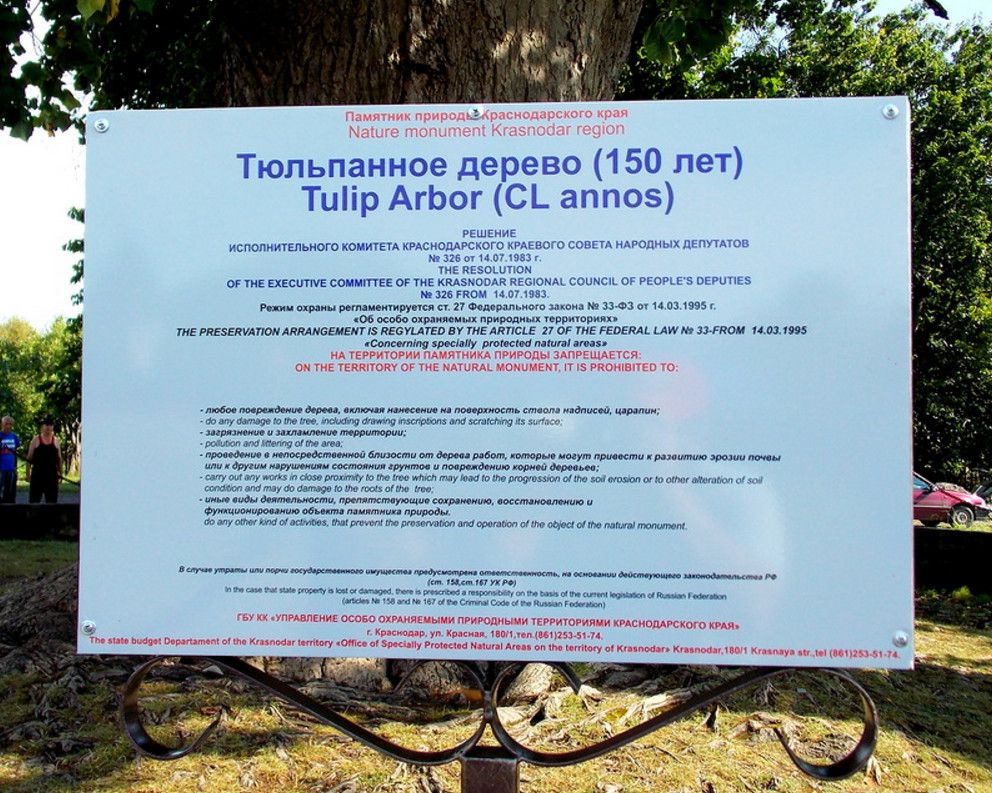 Тюльпановое дерево (лириодендрон тюльпановый) в поселке Головинка было посажено в 1840 году генералом Николаем Раевским. Сегодня высота дерева достигает 35 метров, а диаметр ствола равен 2,5 метрам. Тюльпановое дерево находится под охраной государства как памятник истории и природы и включено в каталог историко-культурного наследия Сочи. «Лира Раевского. Охраняется законом. Посадка 1840 года» - памятная доска с этими словами установлена возле легендарного дерева.