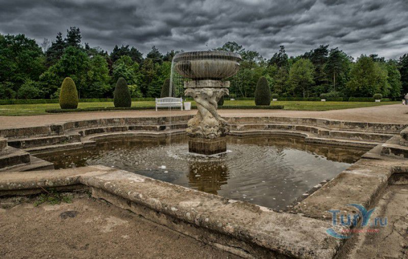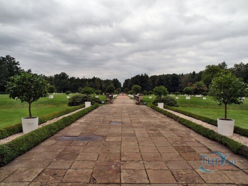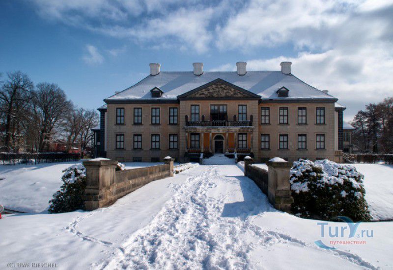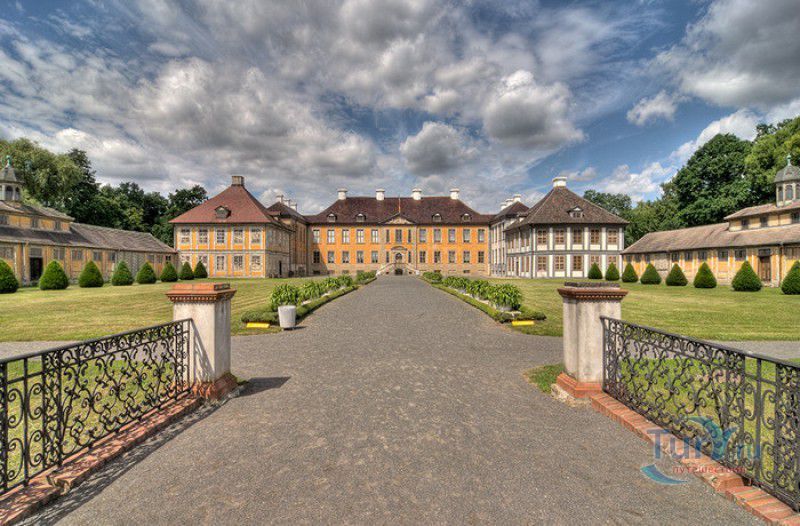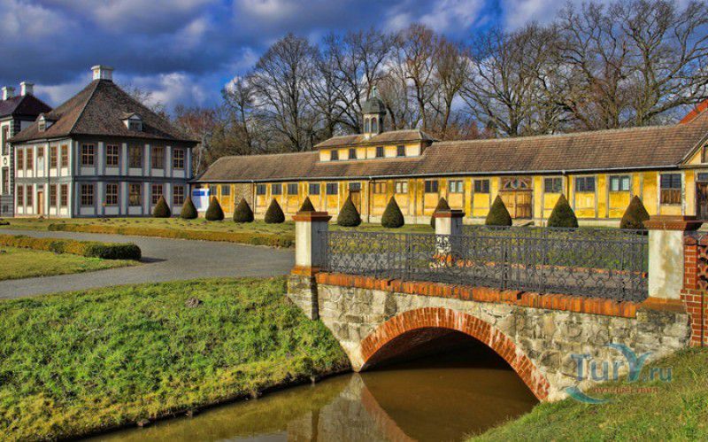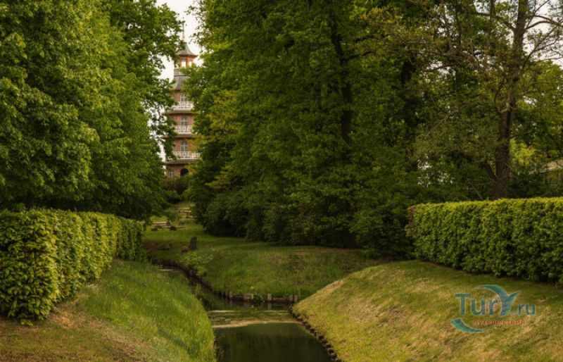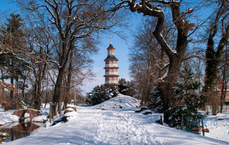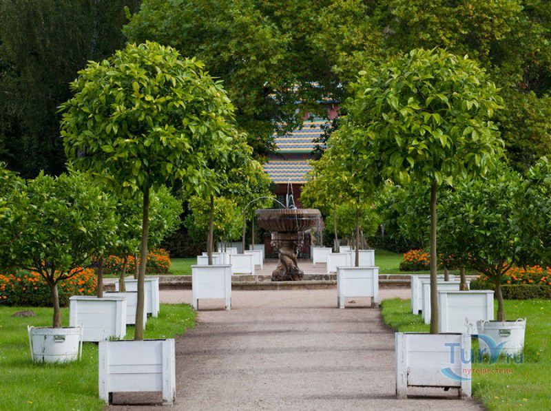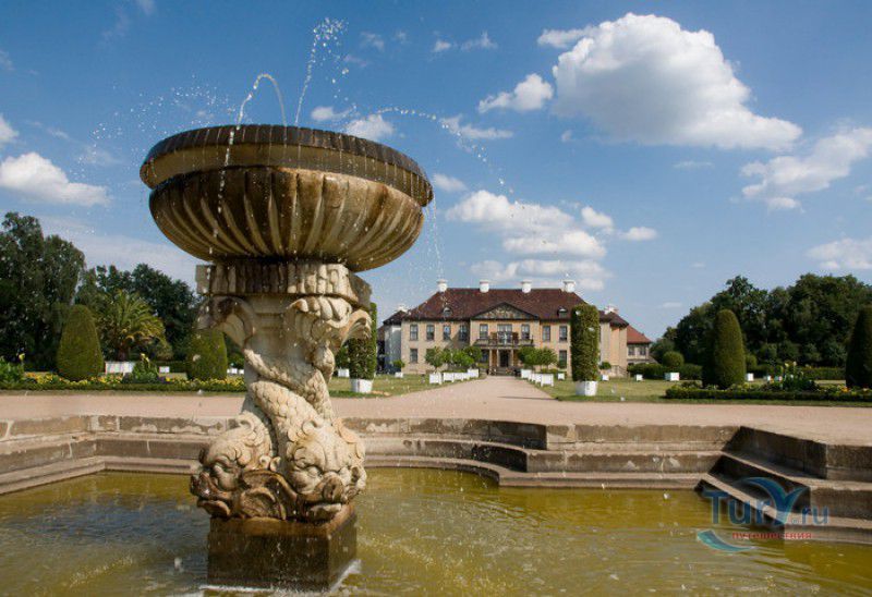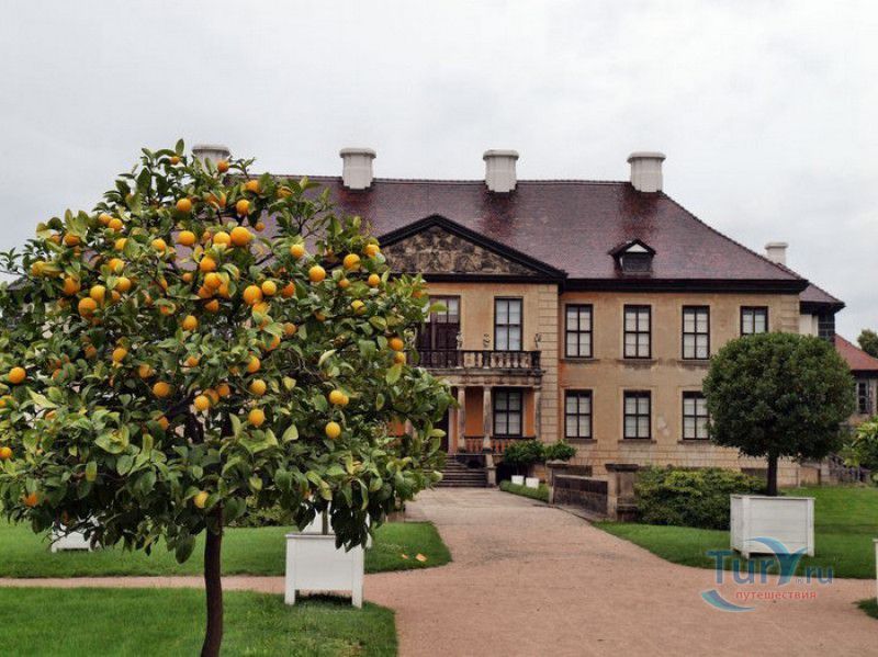 Дворец и Парк Ораниенбаум расположены в Центральной Германии, в федеральной земле Саксония-Анхальт, в городе Ораниенбаум-Вёрлиц. Дворцово-парковый ансамбль Ораниенбаум является частью культурного ландшафта "Парковое королевство Дессау-Вёрлиц", в составе которого в 2000 году внесен в список Всемирного наследия ЮНЕСКО. Строительство дворца было начато в 1681 году по заказу князя Иоганна Георга II Ангальт-Дессаусского в качестве летней резиденции для своей супруги, принцессы Генриетты Катарины из нидерландской Оранско-Нассауской королевской династии. Строительство дворца в стиле голландского барокко было поручено Корнелису Рикверту - нидерландскому архитектору, состоявшему на службе при дворе маркграфа Бранденбурга Фридриха Вильгельма. К 1685 году были возведены главный корпус дворца и кавалерский дом, а также разбит большой барочный сад в голландском стиле. После смерти Иоганна Георга II в 1693 году дворец Ораниенбаум становится постоянным местом жительства его вдовы. Дворец был значительно расширен, для оформления внутренних помещений использовали роскошные кожаные обои и голландскую керамическую плитку - в полуподвальном этаже с того времени сохранилась Летняя столовая, украшенная изразцами, произведенными на мануфактуре голландского города Делфт. После смерти Генриетты Катарины в 1708 году Ораниенбаум редко посещался её потомками и использовался время от времени как охотничий домик. Новую жизнь запустевшее поместье получило в конце XVIII столетия, при князе Леопольде III Фридрихе Франце. При правнуке Иоганна Георга II и Генриетты Катарины интерьер дворца, в соответствии с модой того времени, был оформлен в китайском стиле, а голландский сад превратился в англо-китайский парк с многочисленными арочными мостиками, чайным павильоном и пятиэтажной пагодой. В 1812 году на южной окраине парка была построена одна из самых длинных оранжерей в Европе, предназначенная для выращивания цитрусовых деревьев. После Второй мировой войны во дворце Ораниенбаум размещался филиал Магдебургского государственного архива, позже - Ораниенбаумский земельный архив. В 2001 году архив был переведен в Дессау, а дворцово-парковый ансамбль Ораниенбаум в 2003 году преобразован в музей.