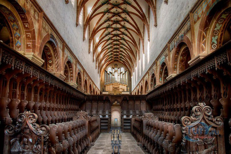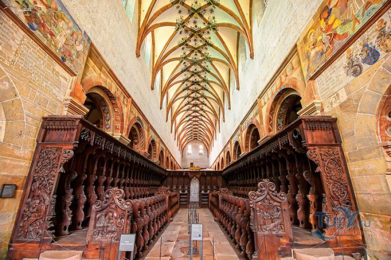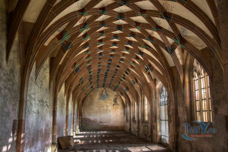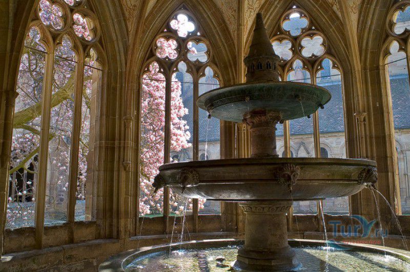 Монастырь Маульбронн - бывший цистерцианский монастырь, наиболее хорошо сохранившийся из всех средневековых обителей на территории, расположенной севернее Альп. Монастырь расположен на юго-западе Германии, в городе Маульбронн, в земле Баден-Вюртемберг, он был основан орденом цистерцианцев в 1147 году под эгидой папы римского Евгения III - первого цистерцианского понтифика. Самые ранние здания монастыря, датируемые концом XII века, построены в романском стиле. В 1178 году была освящена трёхнефная романская церковь в честь Девы Марии. Сооружения, построенные в начале XIII века, возводились уже в стиле ранней готики. К началу XV столетия монастырь Маульбронн представлял собой огромный комплекс с монастырской церковью, часовнями, кельями, Фонтанным домом, крытыми галереями, гостевым домом, трапезными, лазаретом, мельницей, кузницей, бондарными и гончарными мастерскими. На территории монастыря были разбиты большой сад и огород, где монахи занимались разведением редких и лекарственных растений, которые применяли для лечения как самих братьев-цистерцианцев, так и жителей близлежащих окрестностей. Территория аббатства была защищена высокими крепостными стенами с башнями, за которыми располагались виноградники и сельскохозяйственные угодья с системой искусственных прудов и каналов. Монахи выращивали фрукты и овощи, а вина из подвалов монастыря Маульбронн славились далеко за пределами аббатства. Размеренная жизнь монастыря закончилась в 1504 году, когда Маульбронн был захвачен герцогом Ульрихом Вюртембергским. Обитель была разграблена, имущество монастыря роздано герцогом в счёт погашения своих долгов, а в 1534 году монастырь был секуляризован. В 1547 году, при императоре Карле V, монастырь был возвращён цистерцианцам, но не надолго - вскоре он снова перешёл в распоряжение герцогов Вюртембергских. Сын Ульриха, герцог Кристоф фон Вюртембергский основал в Маульбронне протестантскую семинарию, в которой в своё время получали образование выдающийся математик и астроном Иоганн Кеплер, поэт Фридрих Гельдерлин и писатель, лауреат Нобелевской премии Герман Гессе. В 1630 году монастырь был возвращён цистерцианцам, но уже спустя два года, после захвата герцогства Вюртембергского армией шведского короля Густава II Адольфа, принявшего участие в Тридцатилетней войне, аббатство Маульбронн было снова передано протестантам. Окончательно монастырь стал протестантским по условиям заключённого в 1648 году Вестфальского мира. В 1806 году монастырь был секуляризован королём Вюртемберга Фридрихом I, а монастырская протестантская школа была объединёна с семинарией аббатства Бебенхаузен. С 1818 года и по настоящее время в бывшем монастыре Маульбронн действует Евангелическая богословская семинария. До наших дней в первозданном виде дошли многие постройки монастыря, в том числе романская церковь, Фонтанный дом, клуатр (крытая галерея), рефекторий (трапезная) и просторная паперть, датируемая 1220 годом. Сохранилась филигранная каменная резьба, украшавшая монастырские здания, двери главного и южного порталов церкви, изготовленные в 1178 году из еловых досок и обитые кованым железом, статуя Девы Марии, выполненная из древесины грецкого ореха в 1307-1317 годах, великолепные резные готические хоры XV века, три рельефа из "Страстей Христовых", некогда украшавших алтарь XIV