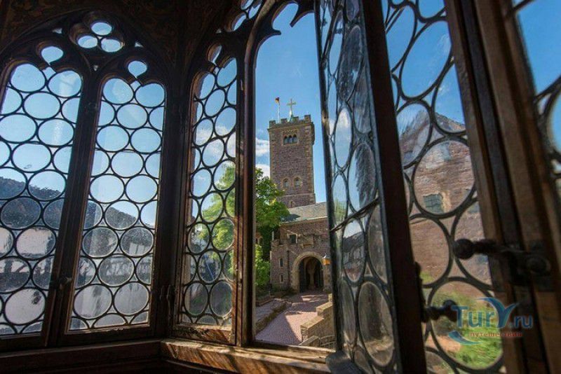 Замок Вартбург - один из самых известных средневековых замков Германии. Он расположен на северо-востоке Германии, в Тюрингии, недалеко от города Айзенах. Вартбург называют "самым немецким и самым мистическим из всех немецких замков" - именно в его стенах впервые была озвучена идея объединения разрозненных германских земель, а вся история замка неразрывно связана с историей Германского государства. В эпоху Средневековья миннезингеры (поэты-музыканты из рыцарского сословия) устраивали в замке поэтические соревнования, наиболее известное из которых - "Вартбургская война", состоялось в 1206 году. По легенде, в состязании приняли участие шестеро "певцов любви" - проигравшего ожидала смерть. Говорят, что от гибели проигравшего менестреля с помощью колдовства спасла жена владельца замка - Софья фон Виттельсбах. Сам великий Рихард Вагнер спустя столетия сделал эту историю сюжетом своей оперы "Тангейзер". В XIII веке в Вартбурге жила Елизавета Венгерская - супруга ландграфа Тюрингии Людвига IV, прославившаяся своей благотворительностью и милосердием. Святую Елизавету Венгерскую особенно чтят в Германии, она считается покровительницей Тюрингии и Гессена. В 1521-1522 годах в Вартбурге скрывался объявленный церковью еретиком и приговорённый к смертной казни Мартин Лютер. Основоположник Реформации, пребывая в глубокой депрессии, утверждал, что в замке его неоднократно посещал дьявол, и, чтобы уберечься от его козней, Лютер занялся переводом на немецкий язык Нового Завета. В 1777 году в замке в течение пяти недель жил великий немецкий поэт Иоганн Гёте. В 1817 году здесь состоялся первый съезд немецких студенческих обществ. Чёрный, красный и жёлтый цвета мундиров студентов впоследствии стали символом свободной и объединённой Германии, а также цветами её государственного флага. В 1938 году в замке, в атмосфере абсолютной секретности, Гитлер встречался с астрологами и ясновидцами, пытавшимися предсказать судьбу Третьего рейха. Известно, что составленный астрологический прогноз не понравился фюреру - все прорицатели, принимавшие участие в составлении предсказания, исчезли из замка бесследно. Возникновение и название самого замка также связаны с легендой - в 1067 году Людвиг Прыгун, представитель знатного дворянского рода Людовингов, охотился в лесах Тюрингии. Увидев высокую скалу, стоявшую посреди лесной чащи, граф воскликнул: "Подожди, гора! Ты должна нести мой замок!", что на немецком языке звучит как "Wart, der Berg!". В результате на вершине скалы, на высоте 411 метров над уровнем моря, был построен родовой замок Людовингов (в то время - деревянный), получивший название Вартбург. Первое письменное упоминание о нём датируется 1080 годом - в одной из летописей говорится о нападении воинов Людвига Прыгуна на отряд короля Генриха IV, следовавшего мимо замка. В 1155-1162 годах ландграфом Людвигом II на месте деревянного был построен каменный замок, один из первых каменных замков в Германии. Именно этот дворец, по тем временам роскошный и величественный (замок был даже больше императорского дворца в Госларе), сохранился до наших дней. От построек XII столетия остались также восточная часть крепостной стены, ворота и дальняя башня. В 1318 году замок сильно пострадал от пожара, возникшего от удара молнии. Спустя год началось его восстановление - в замке появились большое отапли