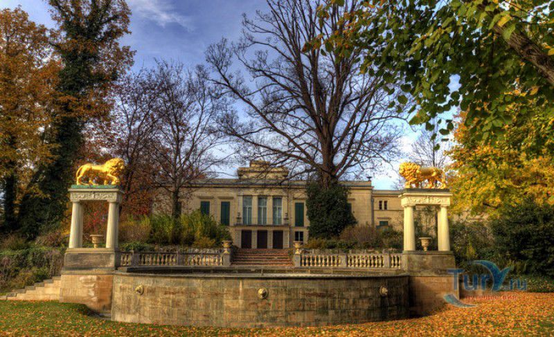 Дворец и Парк Глинике расположены на юго-западной окраине Берлина, на границе с Потсдамом, недалеко от Сан-Суси. После того, как Фридрих II Великий переселился из Берлина в Потсдам, в свой дворец Сан-Суси, прусская знать также стала обзаводиться дворцами и поместьями в окрестностях Потсдама, поближе к королевской резиденции. Поместьем Глинике, расположенным в шести километрах от Сан-Суси, попеременно владели несколько богатых и знатных семейств, в числе которых - граф Линденау и канцлер Пруссии, князь Гарденберг. При последнем в имении был разбит декоративный сад по проекту ландшафтного архитектора Петера Ленне, а от предыдущих хозяев сохранился небольшой замок, напоминающий крепость. После смерти князя Гарденберга в 1822 году поместье было выставлено на продажу, и в 1824 году его купил принц Карл Прусский, третий сын короля Фридриха Вильгельма III, только что вернувшийся из путешествия по Италии и пожелавший создать в Глинике свой собственный "кусочек" Италии. Для перестройки старого замка Карл Прусский пригласил архитектора Карла Фридриха Шинкеля, после смерти которого строительство продолжил его лучший ученик - Людвиг Персий. В результате замок был перестроен в классическом стиле по образцу итальянской виллы. Вход во дворец оформлен в виде портика, фасады украшены скульптурами и барельефами, стилизованными под античные статуи. На первом этаже располагались комнаты прислуги, столовая и служебные помещения, на втором этаже - Красный зал, Зелёный салон, Бирюзовая спальня, Мраморный зал, библиотека, личные апартаменты Карла Прусского и его жены, принцессы Марии Луизы Александрины (внучки российского императора Павла I). Для декора внутренних помещений дворца Шинкель использовал мраморные камины, паркет из ценных пород дерева, античные статуи, картины, хрустальные люстры и элегантную мебель. Каждая комната дворца индивидуальна - начиная от цветовой гаммы, используемой архитектором для оформления того или иного номера, и заканчивая предметами интерьера и дизайном мебели. На территории парка, который при Карле Прусском был значительно расширен, были построены ротонда с колоннами, названная "Большое любопытство", чайный домик "Маленькое любопытство", охотничий домик с псарней и конюшней, а также здание под названием "Казино", на первом этаже которого располагалась элегантная гостиная, а на втором - комнаты для гостей. Павильоны и беседки, построенные в классическом стиле, гармонично вписываются в парковый ландшафт - сооружённые из белого камня они эффектно выделяются на фоне пышной зелени парка. В 1840 году перед главным входом во дворец был установлен Львиный фонтан, созданный по подобию фонтана на вилле Медичи в Риме. При Карле Прусском были продолжены работы по созданию парка - разбиты Сад развлечений, итальянский и английский сады с живописными лужайками, тенистыми рощами и цветниками. Парк Глинике, созданный знаменитым ландшафтным архитектором Петером Ленне, признан выдающимся произведением садово-парковой архитектуры. Во время Первой и Второй мировых войн дворцово-парковый ансамбль Глинике не пострадал, после войны во дворце располагался отель, а в 80-х годах XX века дворец был преобразован в музей. В западном крыле дворца был открыт Hofgärtnermuseum - единственный в Европе музей, посвященный жизни и творчеству прусских ландшафт
