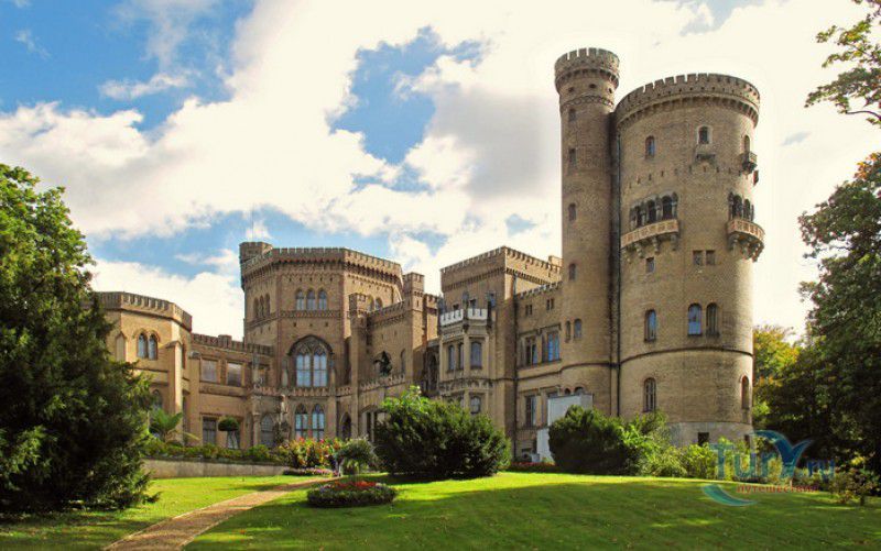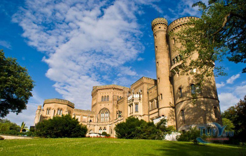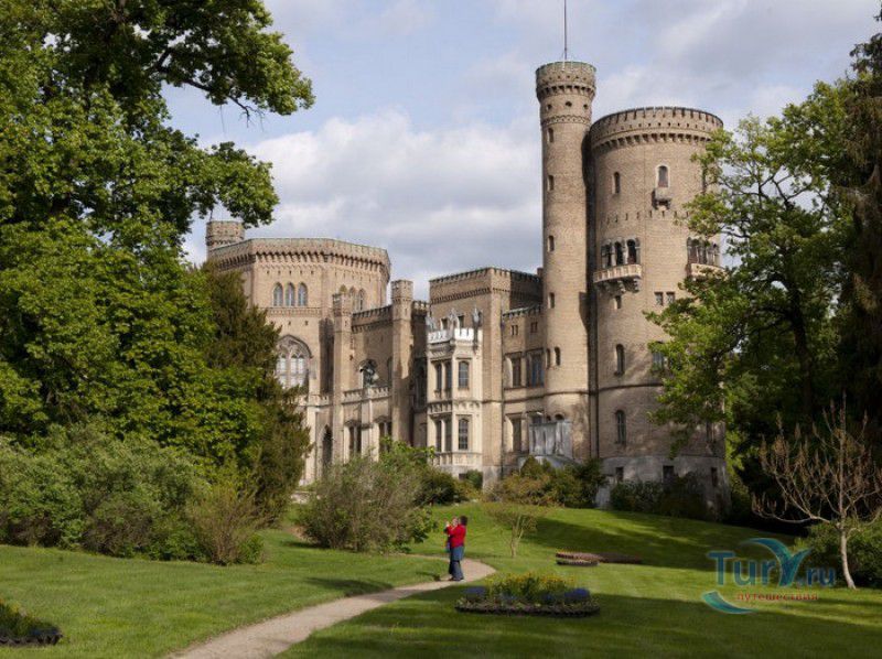 Замок и Парк Бабельсберг в составе ансамбля Дворцов и парков Потсдама внесены в список Всемирного наследия ЮНЕСКО. Парк с дворцом расположены в северо-восточной части города Потсдам, на левом берегу реки Хафель, рядом с озером Глинике. Своим появлением замок и парк Бабельсберг обязаны принцу Вильгельму, будущему кайзеру Вильгельму I, мечтавшему иметь свою собственную летнюю резиденцию. В 1833 году король Фридрих Вильгельм III дал разрешение своему второму сыну на строительство дворца в Бабельсберге. В этом же году архитектор Карл Фридрих Шинкель представил принцу Вильгельму и его жене, принцессе Августе, проект замка в стиле английской готики в духе замков Тюдоров. Августа слыла знатоком и любительницей английской готики, она часто вмешивалась в работу над проектом, нередко у принцессы с архитектором возникали споры - Шинкель проектировал замок в сдержанных готических формах, а его заказчица требовала несвойственный этому стилю богатый и пышный декор. Строительство замка существенно сдерживала нехватка средств, так как отец-король выделил своему сыну деньги на строительство скромного загородного дома, а никак не на возведение замка. Поэтому к октябрю 1835 года, когда состоялось церемония открытия дворца, была построена лишь малая часть запланированного дворцового комплекса. Замок был построен из жёлтого кирпича, восьмиугольное здание первоначально использовалось под столовую, а после дальнейшей перестройки - в качестве чайного салона. Большие окна, почти достигавшие пола, пропускали во внутренние помещения много света, из этих окон открывались великолепные виды на живописные окрестности. Застопорившееся строительство было возобновлено в 1840 году, когда принц Вильгельм был объявлен наследником престола своего старшего брата Фридриха Вильгельма IV, не имевшего прямых наследников. Небольшой дворец Бабельсберг уже не соответствовал по статусу наследнику престола, и строительство готического замка было возобновлено. К этому времени умер архитектор Шинкель, и руководить работами было поручено его ученику - Людвигу Персию. Архитектор старался придерживаться планов своего учителя, но принцесса Августа требовала всё новых изменений - к уже построенному дворцу было пристроено ещё одно здание, которое соединялось со старым посредством высокого, в два этажа, танцевального зала восьмиугольной формы. В новом западном крыле, помимо многих других помещений, разместились покои детей принца и зальная столовая. Завершила облик замка массивная башня. После смерти Людвига Персия в 1845 году, новым архитектором был назначен Иоганн Генрих Штрак, вкусы которого полностью совпали с желанием заказчиков. При нём чёткая линия фасадов "украсилась" многочисленными башенками, эркерами, балюстрадами и окнами различной формы в "бюргерском" стиле. В октябре 1849 года, после завершения строительства западного крыла, состоялась очередная торжественная церемония открытия замка Бабельсберг. Одновременно со строительством замка были начаты работы по созданию парка Бабельсберг, авторами проекта которого стали ландшафтные архитекторы Петер Йозеф Ленне и Герман фон Пюклер-Мускау. В парке были созданы садовые террасы с декоративными кустарниками и цветниками, проложены пешеходные дорожки и аллеи, проведена оросительная система, построены фонтан